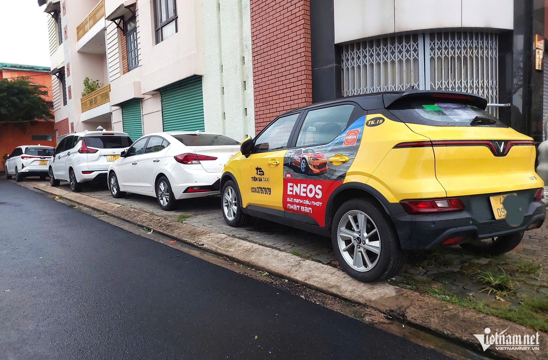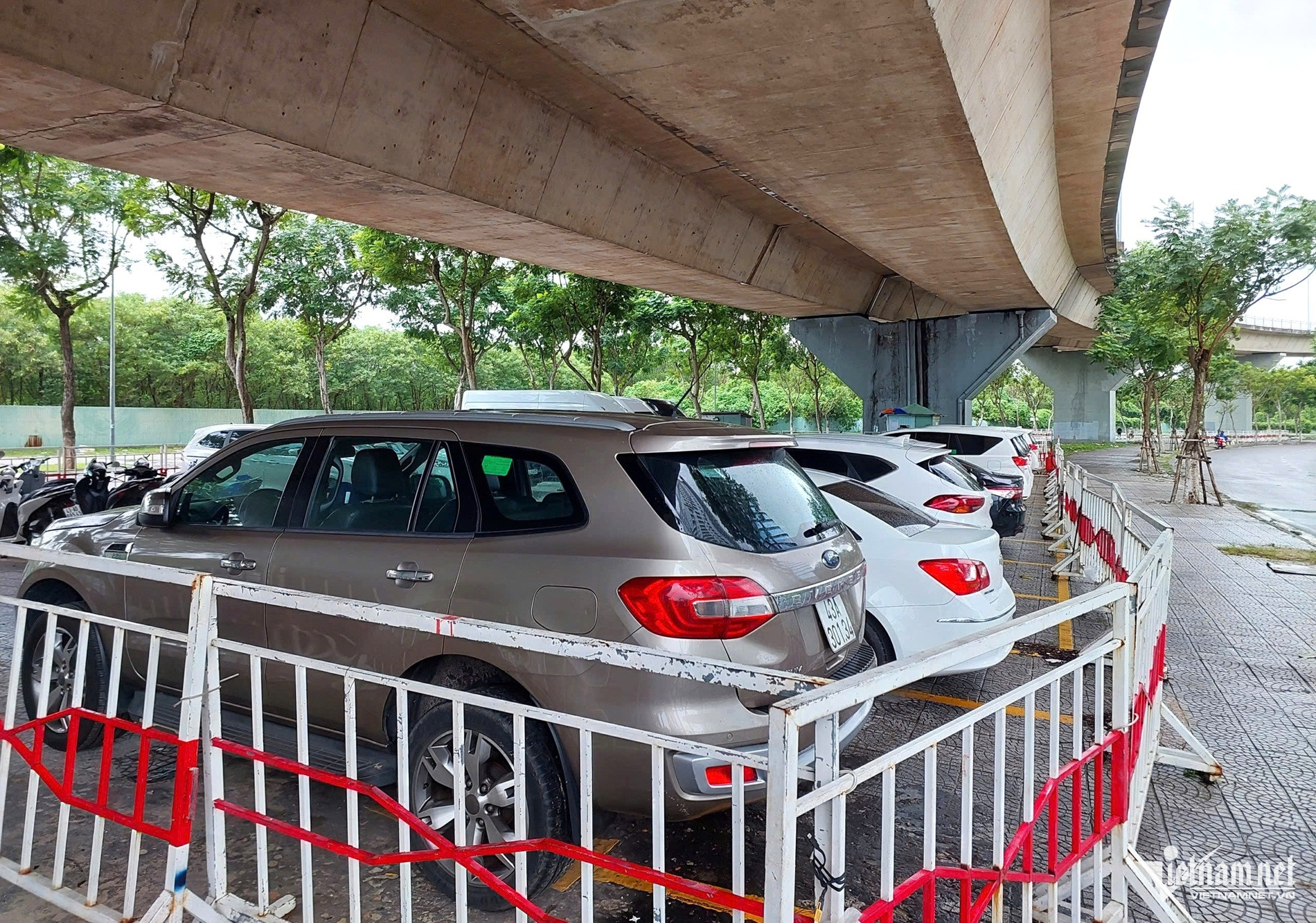 Pe drumul de coastă Nguyen Tat Thanh, mulți oameni își aduc mașinile pe trotuar în mod proactiv, alegând locuri goale, fără copaci, pentru a parca temporar, evitând furtunile și inundațiile.