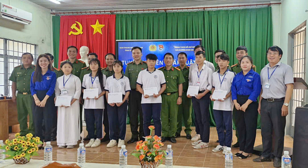 La Școala Primară Loc Ninh (comuna Loc Ninh, provincia Tay Ninh), Uniunea Tineretului din cadrul Departamentului de Poliție Provincială a donat elevilor școlii 50 de seturi de bănci și scaune și 500 de caiete. Delegația a desfășurat, de asemenea, campanii de conștientizare juridică privind siguranța rutieră, prevenirea consumului de droguri, violența în școli, frauda cibernetică și escrocheria „loc de muncă ușor, salariu mare” pentru elevi; și a oferit 15 carduri de asigurare medicală elevilor defavorizați de la Liceul Duong Minh Chau (comuna Duong Minh Chau, provincia Tay Ninh).