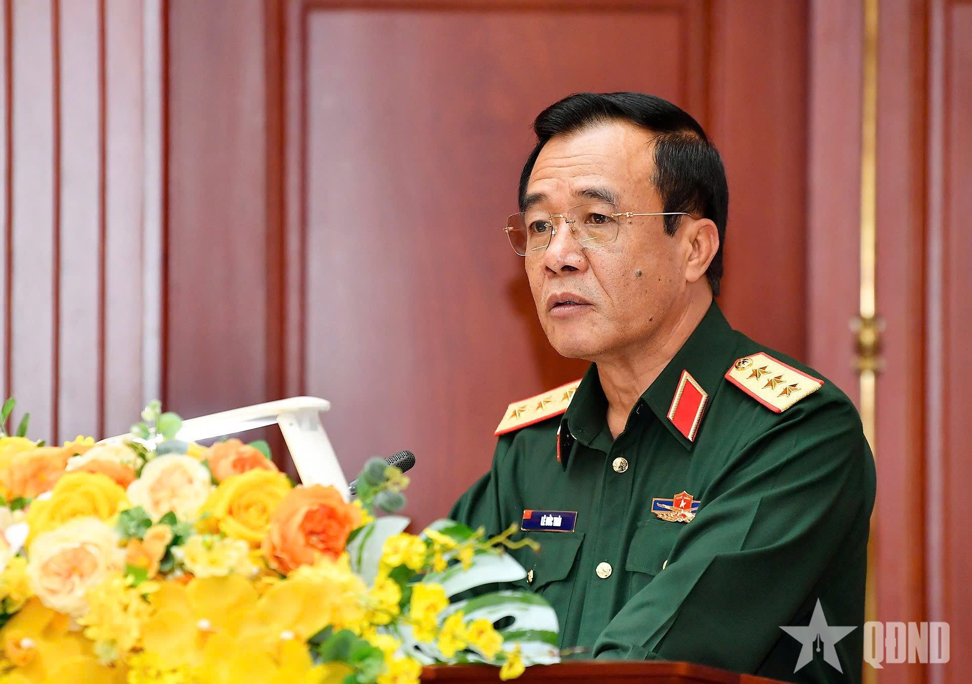 Generalul-locotenent Vu Trung Kien vorbește la conferință. |