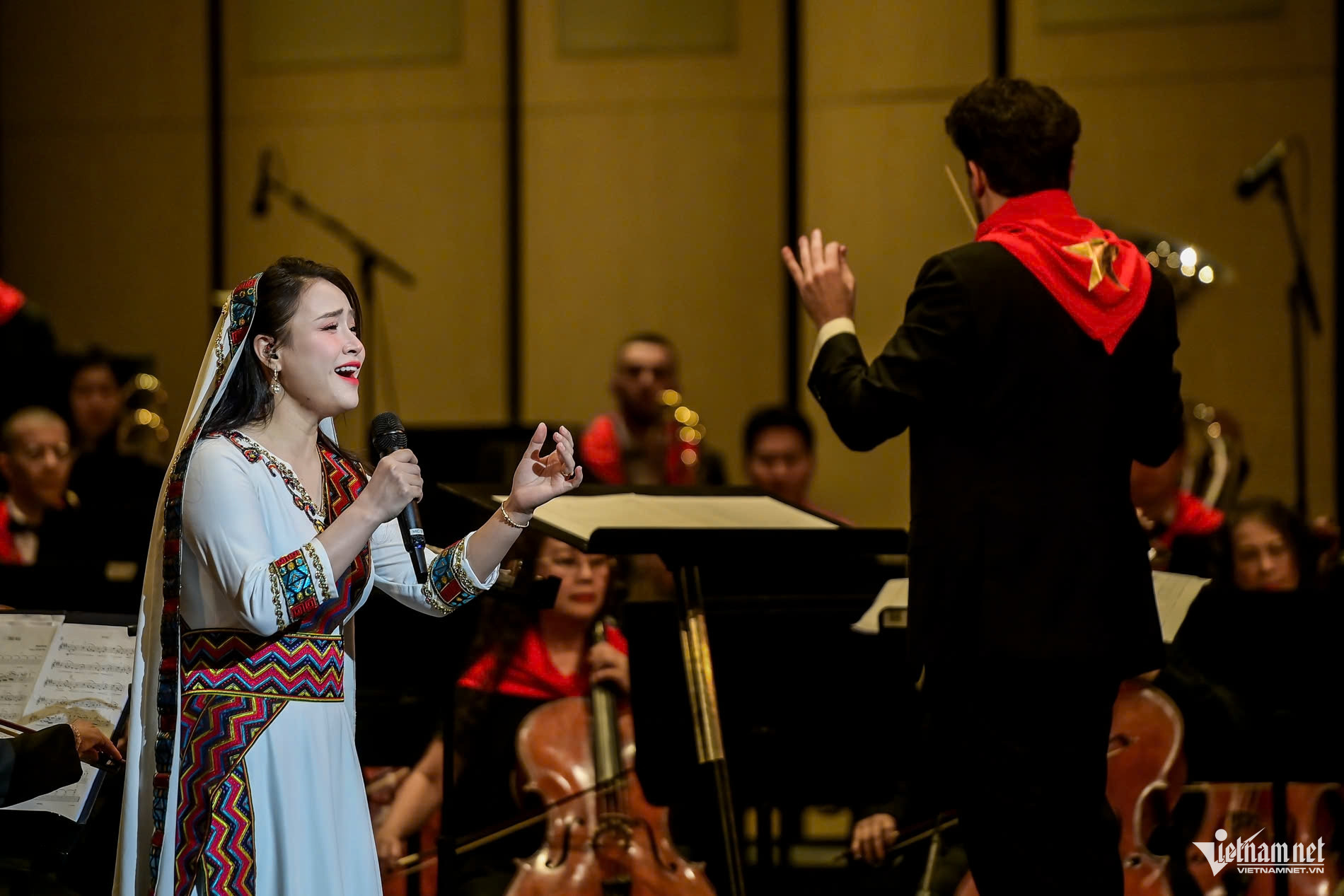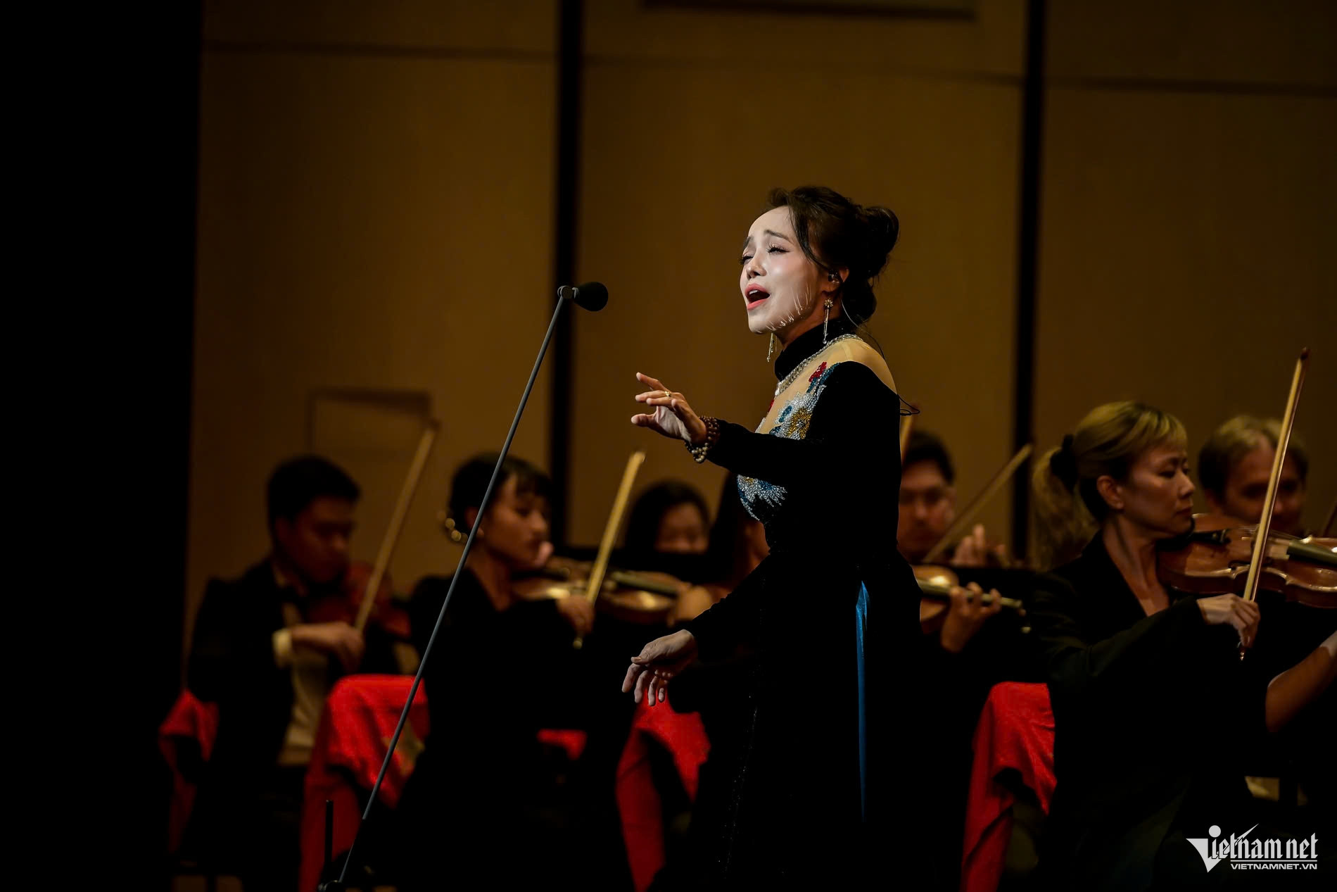 În același timp, controlul volumului exercitat de orchestra aproape pe tot parcursul timpului în care vocile au cântat a pus o presiune mare asupra vocii - dar tocmai în această provocare a strălucit artistul emerit Pham Khanh Ngoc.