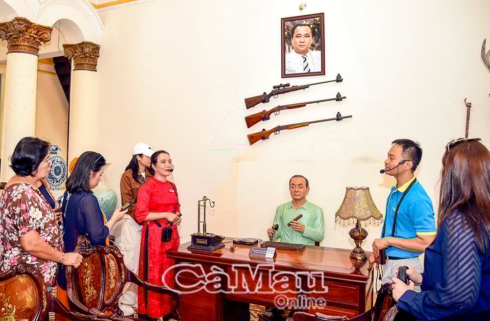 Ghidul turistic prezintă biroul și povestește anecdote despre Prințul de Bac Lieu.
