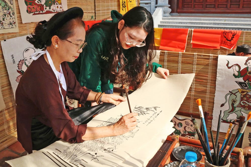 Turiștii internaționali pot experimenta picturile tipărite la Centrul de Conservare a Picturii Populare Dong Ho (secția Thuan Thanh). |