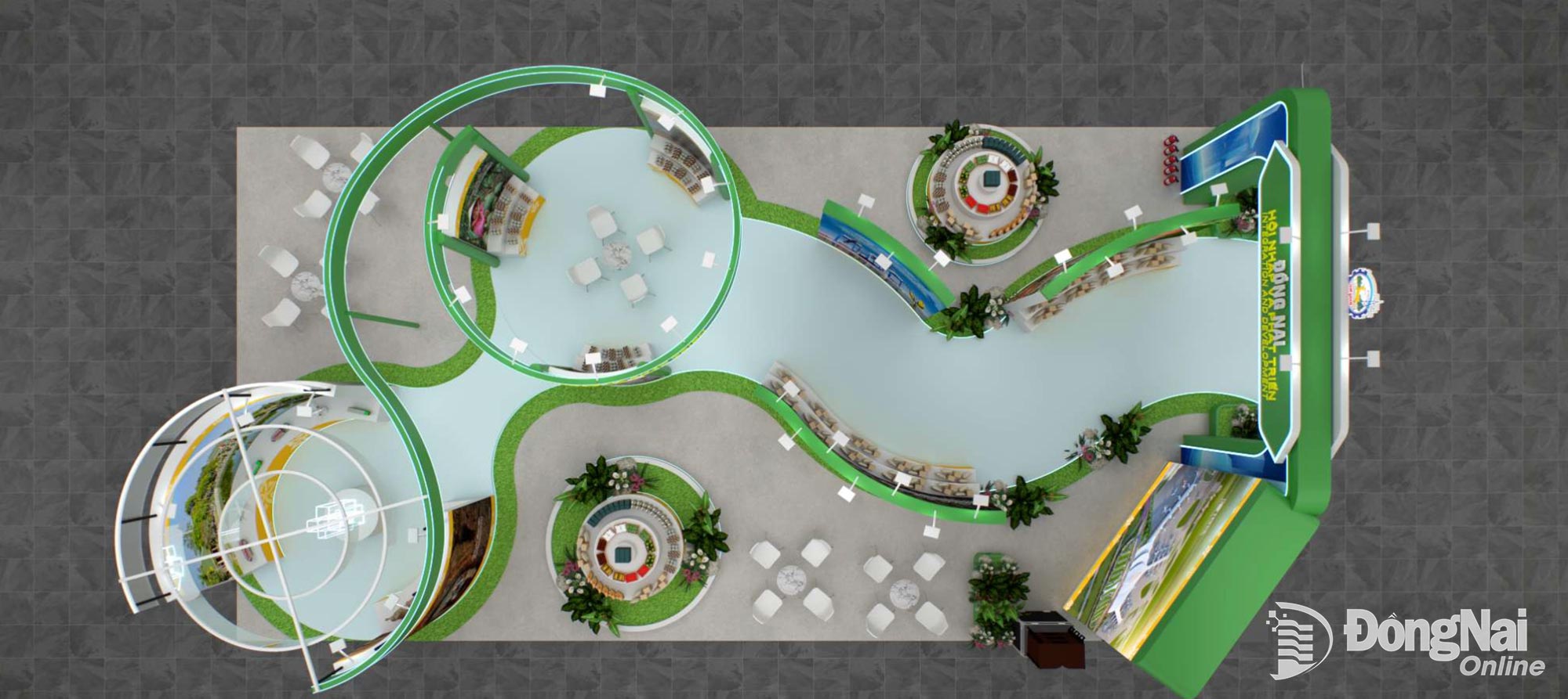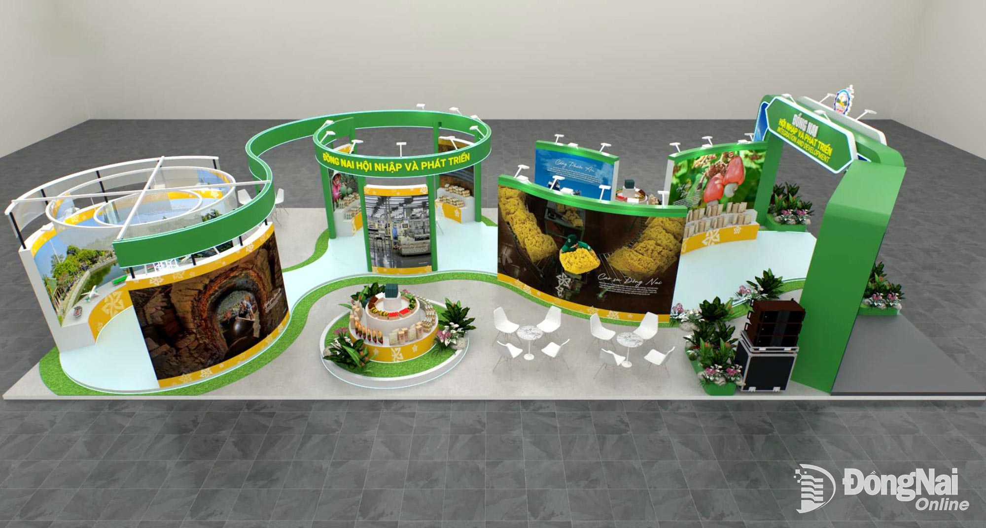 Spațiul expozițional de la standul provinciei Dong Nai este conceput ca o călătorie de decolare, recreând întregul proces de dezvoltare economico-industrială-comercială a provinciei. De la valorile fundamentale ale agriculturii tradiționale, puterea producției industriale, până la dezvoltarea infrastructurii de transport-logistică-tehnologică, spre integrarea globală.
