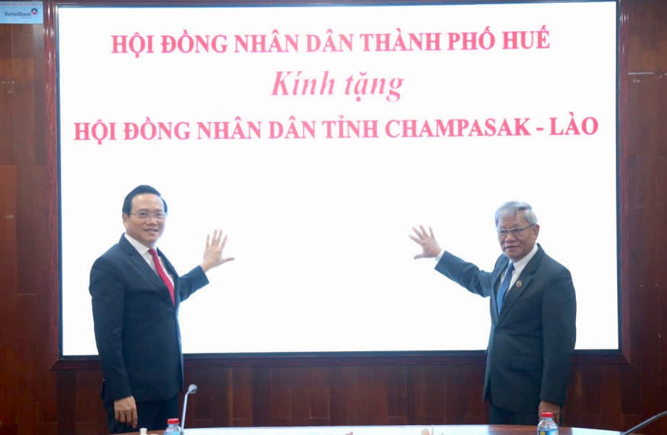 Cu această ocazie, Comitetul Permanent al Consiliului Popular al orașului Hue a oferit Consiliului Popular Provincial Champasak un sistem electronic de ecrane LED, contribuind la îmbunătățirea facilităților și servind activității agenției locale alese.