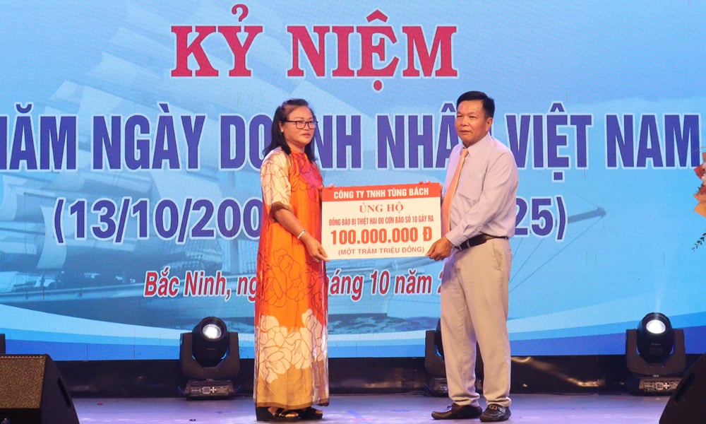 Cu această ocazie, Asociația Întreprinderilor Mici și Mijlocii din Vietnam a lăudat și onorat întreprinderile și antreprenorii cu realizări remarcabile în producție și activități comerciale; delegații și întreprinderile membre au donat 650 de milioane de VND pentru a sprijini oamenii din provincie să depășească pagubele cauzate de recenta furtună nr. 11.