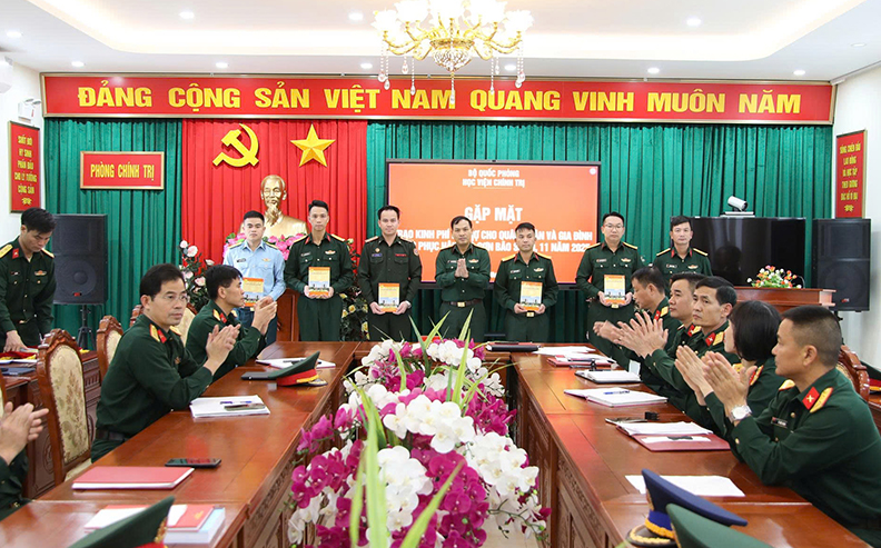 Confruntați cu această situație, Comitetul de Partid și Consiliul de Administrație al Academiei au dispus prompt agențiilor și unităților să analizeze, să analizeze situația, să viziteze, să încurajeze și să creeze condiții pentru ca soldații să se întoarcă acasă în permisie pentru a-și ajuta familiile să depășească consecințele. În același timp, demonstrând spiritul „unei singure familii”, împărtășind dificultățile cu camarazii, Academia a alocat Fondul „Pentru Săraci” pentru a sprijini 27 de cadre, studenți și angajați, cu un cost total de aproape 60 de milioane de VND.