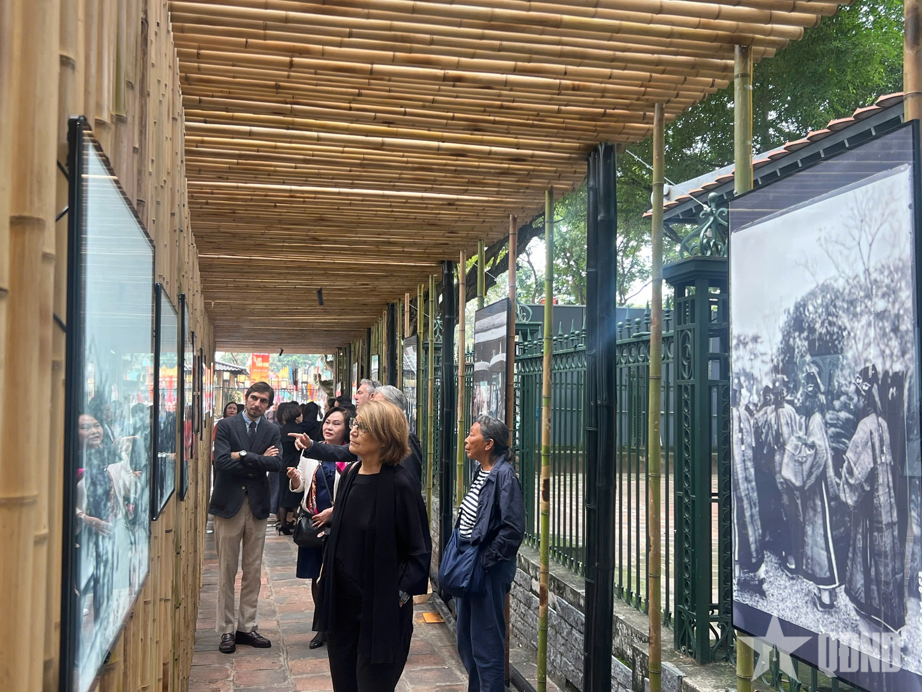 La expoziție, vizitatorii pot admira un număr mare de fotografii realizate de fotograful Firmin-André Salles, care surprind examenul Hương din 1897 de la Nam Định . Acesta este un document rar care s-a păstrat încă, transmițând autentic atmosfera solemnă, dar totodată vibrantă, a școlii de examinare antice. Lucrările sunt expuse într-un spațiu unic din bambus, inspirat de arhitectura școlilor de examinare antice, oferind spectatorilor sentimentul că intră într-o adevărată „școală de examinare”. În acel spațiu, imagini alb-negru vechi de peste o sută de ani recreează viu scena candidaților care susțin examenul, examinatorii, corturile și simbolurile tipice ale sistemului de examinare confucianist.