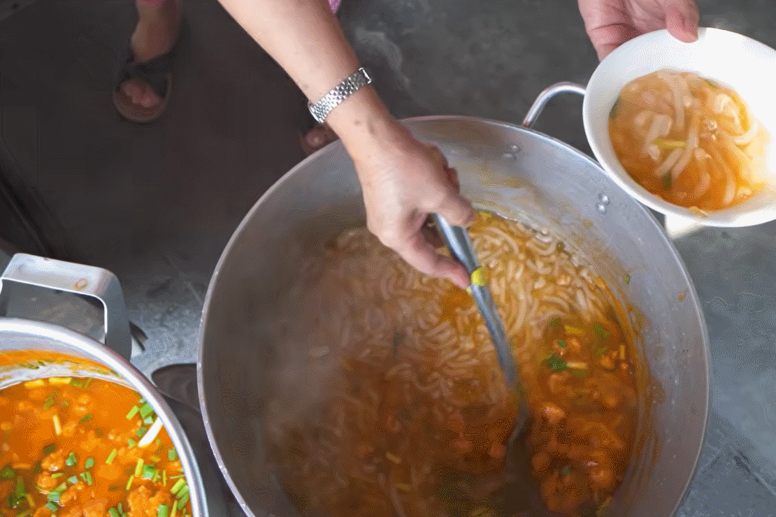 Când chelnerul a adus mâncarea la masă, Seonguk și Simon au fost amândoi surprinși de bolul „super-dimensionat” de supă de vită cu tăiței, care era umplut generos cu pulpe de porc, chiftele de crab, budincă de sânge etc., servită cu un bol mare de legume proaspete. Lângă el au fost așezate un bol colorat de orez cu scoici și chiftele de orez alb imaculat.