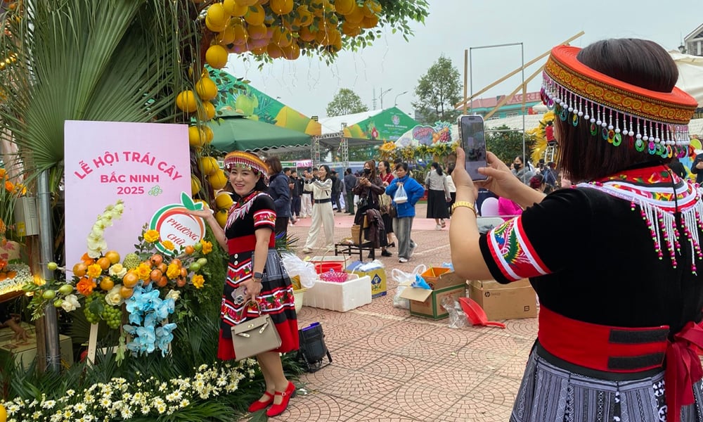 Turiștii se bucură să vină la Festivalul Fructelor de la Bac Ninh 2025. |