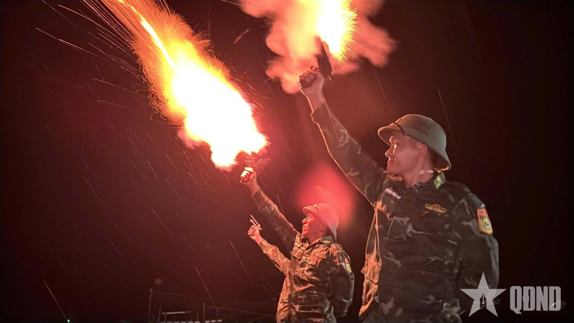 Garda de frontieră provincială Quang Ngai a tras rachete de semnalizare pentru a atrage navele și ambarcațiunile să se adăpostească de furtună. |