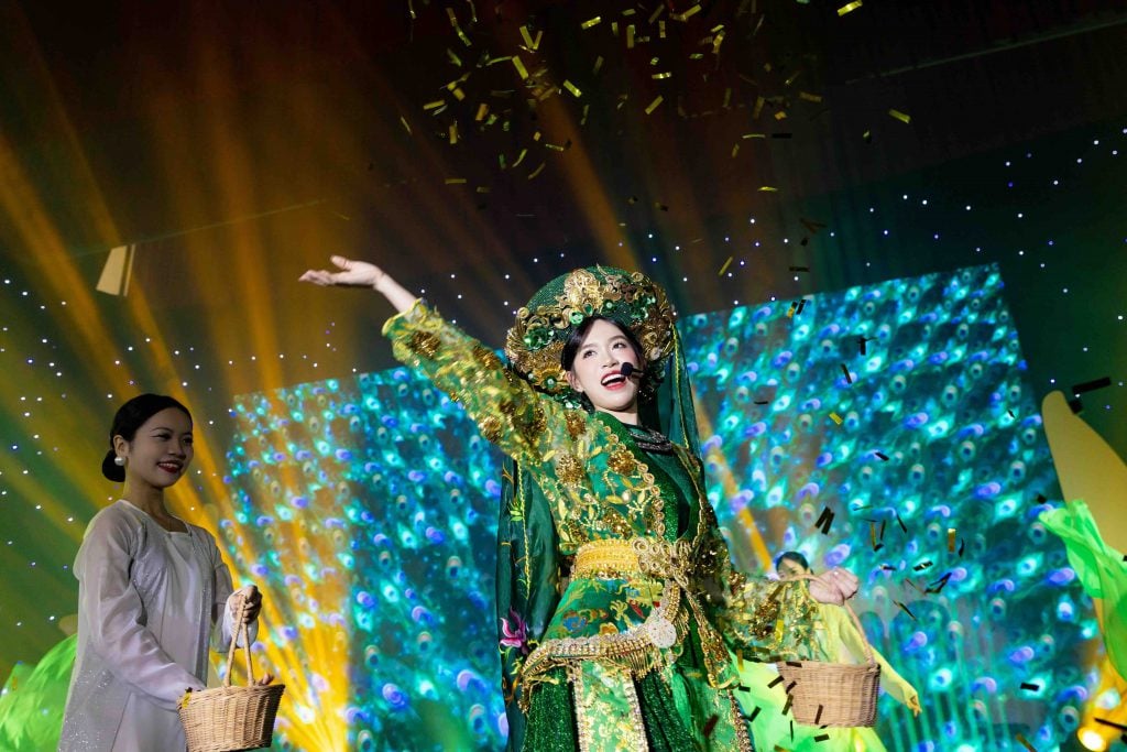 Petrecerea colorată a început cu Spectacolul Rochiilor de Seară , unde concurentele au apărut în costume superbe, pășind cu încredere sub luminile scenei. Fiecare privire și zâmbet emanau eleganță, gust estetic și un comportament standard - valorile care au creat imaginea unei însoțitoare de bord Vietnam Airlines: profesionistă, sofisticată și abordabilă.