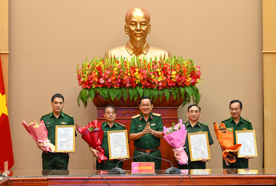 | Generalul-locotenent superior Vo Minh Luong, membru al Comitetului Central al Partidului, membru al Comisiei Militare Centrale, ministru adjunct al Apărării Naționale , a decorat unitățile de grăniceri participante la Proiectul A825p. |