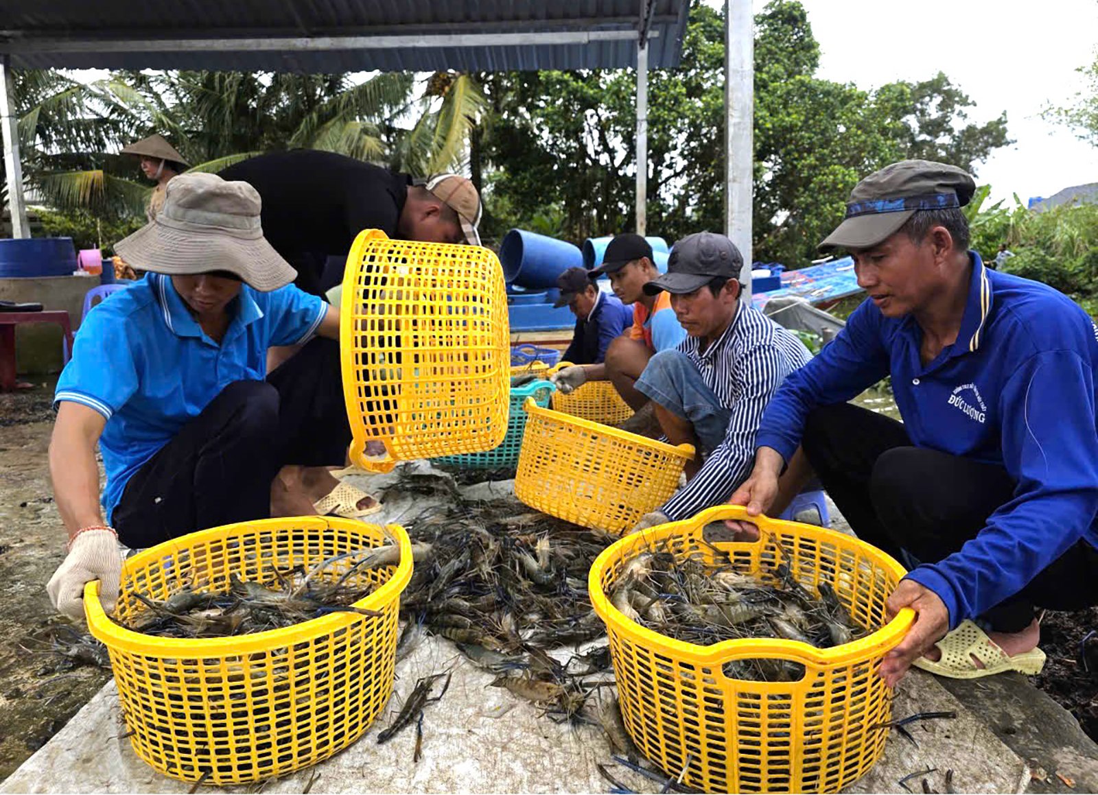 În ultimii ani, modelul de creștere a creveților gigantici de apă dulce s-a dezvoltat puternic, suprafața de creștere a creveților în comunele Vinh Tuy și Vinh Thuan fiind în creștere. Creveții gigantici de apă dulce creează mai multe locuri de muncă pentru muncitorii agricoli inactivi. Unele locuri de muncă „subsecvente”, cum ar fi recoltarea creveților, sortarea creveților, transportul alimentelor, închirierea bazinelor pentru creveți... aduc un venit bun. Familia domnului Ngo Hoang Tu, care locuiește în cătunul Phuoc An, comuna Vinh Tuy, are puțin teren pentru producție, practicând în principal cultivarea ananasului. De mulți ani, acesta s-a ocupat de selectarea creveților gigantici de apă dulce. Domnul Tu a spus: „În lunile în care nu sunt ocupat cu cultivarea ananasului, merg să culeg creveți pentru angajare. În fiecare lună, câștig cel puțin 5 milioane VND, cel mult 8-9 milioane VND. Această muncă se poate face pe tot parcursul anului, nu este prea grea și aduce un venit stabil care mă ajută să îmbunătățesc economia familiei mele.”