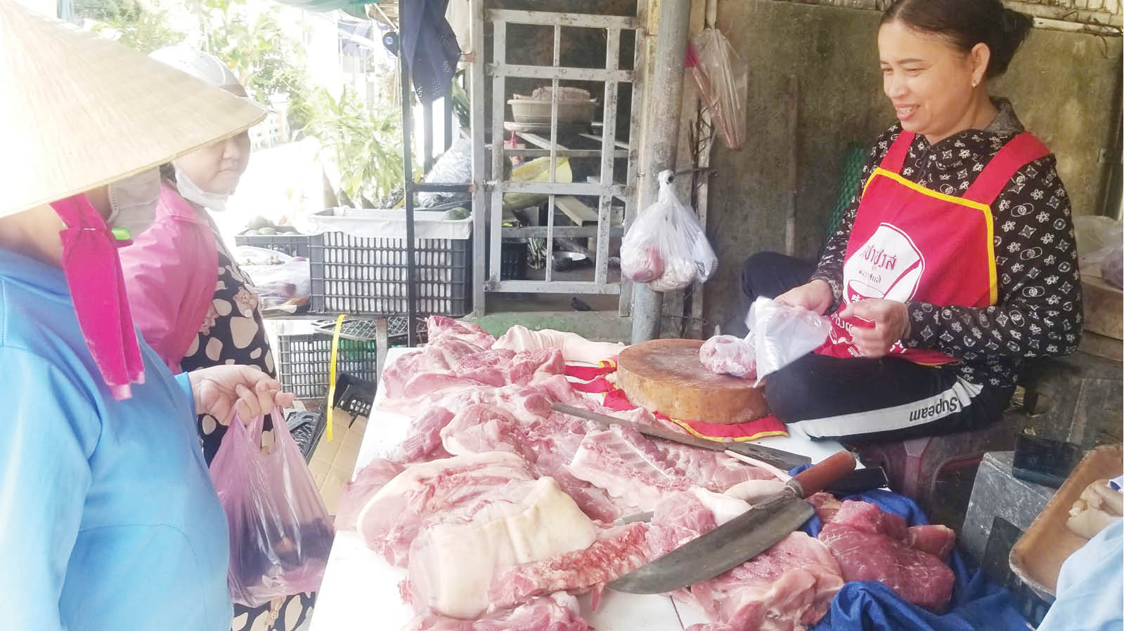 Potrivit dnei Bui Thi Thu Hang, șefa Consiliului de Administrare al Pieței Dong Ba, consumul de carne de porc a crescut cu aproximativ 60% față de cel mai scăzut nivel din timpul pandemiei. Peste 60 de tarabe administrate de femei comerciante la piață și-au reluat activitatea. În plus, Piața Dong Ba are 12 tarabe specializate în distribuția angro, fiecare tarabă vânzând în medie 500-1.000 kg de diferite tipuri de carne de porc zilnic.