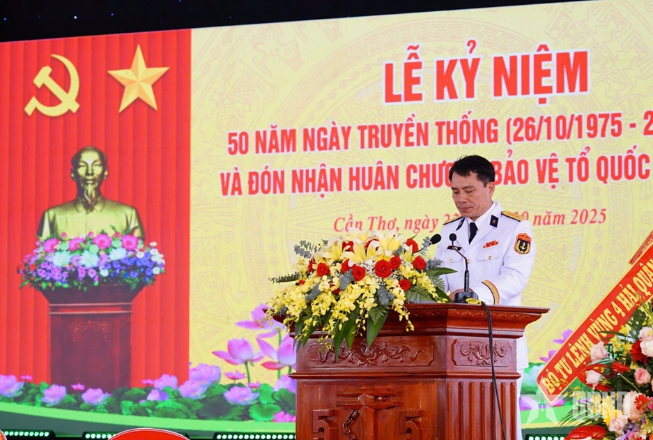 Colonelul Vu Khac Tri, secretarul partidului și comisar politic al Uzinei Navale X55, a citit scrisoarea de laudă din partea ministrului Apărării Naționale la ceremonie. |