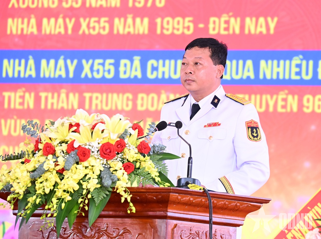 Vorbind la ceremonie, colonelul Le Hong Quang, director și șeful Departamentului de Logistică și Inginerie al Marinei, a solicitat Comitetului de Partid și comandanților să se concentreze pe construirea unei Uzine X55 puternice din punct de vedere politic, ideologic și organizațional; construirea unei organizații de partid curate și puternice, a unei unități puternice și cuprinzătoare, „exemplare și tipică”, contribuind împreună cu alte forțe din Serviciu la protejarea fermă a suveranității mării, insulelor și a platformei continentale sacre a Patriei.