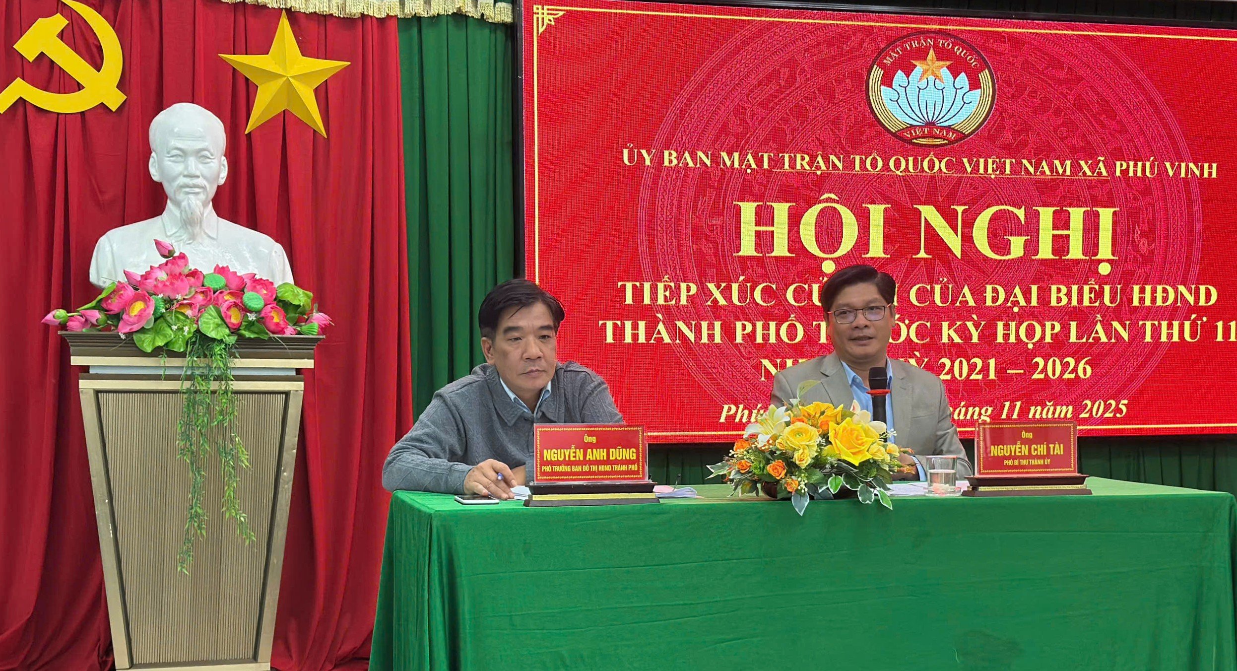 În comuna Phu Vinh, Grupul Delegației nr. 7 a prezidat ședința, fiind condus de dl. Nguyen Chi Tai, secretar adjunct al Comitetului de Partid al orașului, și de dl. Nguyen Anh Dung, șef adjunct al Comitetului Urban al Consiliului Popular al orașului. Delegații au informat alegătorii despre situația socio -economică din octombrie și din primele 10 luni ale anului 2025, despre sarcinile cheie pentru ultimele două luni ale anului și despre rezultatele soluționării petițiilor anterioare.