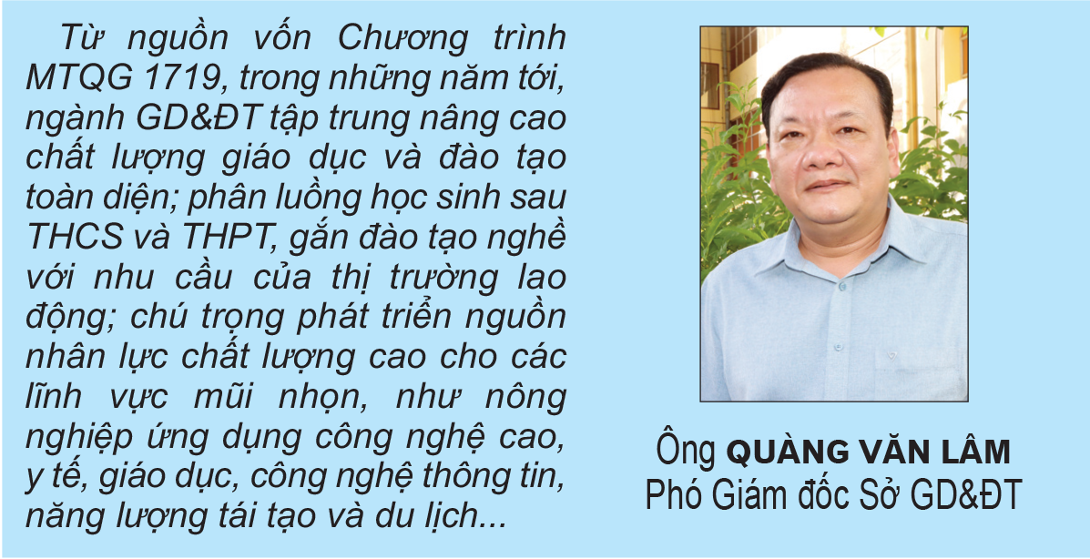 În perioada 2021-2025, din capitalul Programului 1719, întreaga provincie va implementa 14 proiecte pentru renovarea, modernizarea și construirea de săli de clasă, internate și semi-internat; achiziționarea de echipamente didactice și de locuit pentru elevii școlilor-internat și semi-internat pentru minorități etnice și a școlilor generale cu elevi semi-internat. Dintre acestea, vor fi modernizate 17 camere pentru profesori; 269 camere pentru elevi; 68 săli de clasă; 13 săli de mese și bucătării; 13 toalete; 53 articole auxiliare; investiții în echipamente didactice pentru 175 de școli-internat și semi-internat; eliminarea analfabetismului pentru 3.533 de persoane din zonele cu minorități etnice, cu un cost total de peste 500 de miliarde de VND.