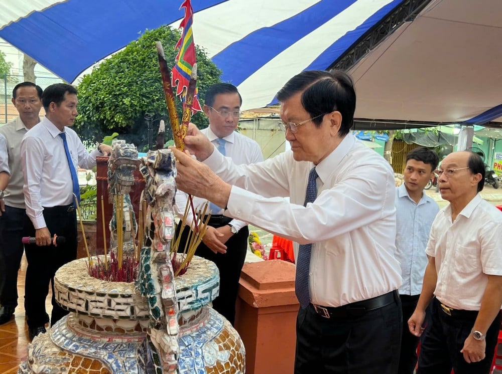 Fostul președinte Truong Tan Sang oferă tămâie la Templul Amiralului Nguyen Tan Kieu