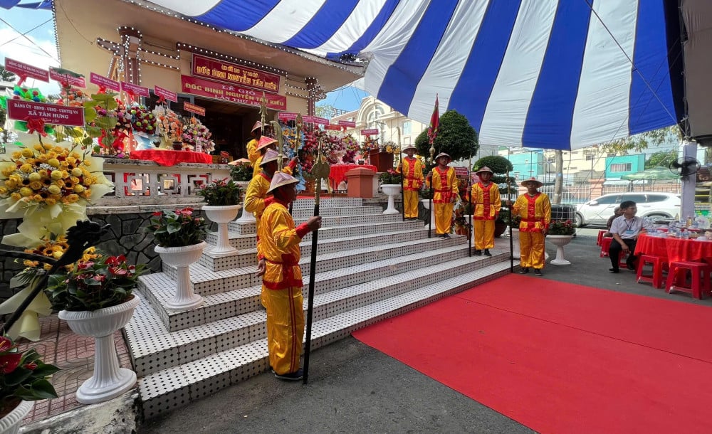 Slujba de pomenire pentru Generalul Nguyen Tan Kieu se desfășoară conform unor ritualuri tradiționale, cum ar fi rugăciunea pentru pacea și prosperitatea națională, oferirea de tămâie, sacrificarea porcilor pentru a-l venera pe zeu, aducerea de sacrificii zeului agriculturii și venerarea Generalului Nguyen Tan Kieu. Festivalul este plin de spectacole de arte marțiale și spectacole de operă, atrăgând un număr mare de oameni și turiști.