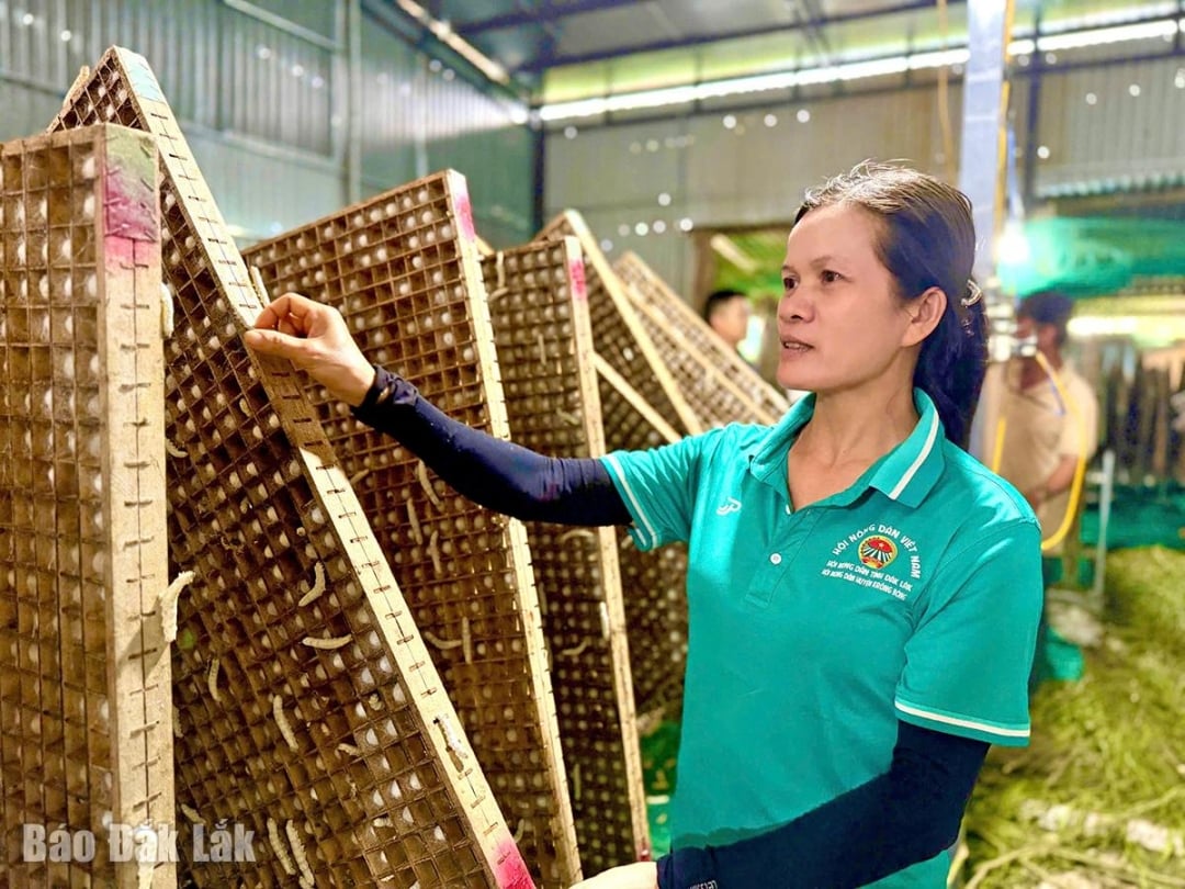 | Modelul de creștere a viermilor de mătase ajută multe gospodării din comuna Krong Bong să aibă un venit stabil. |
