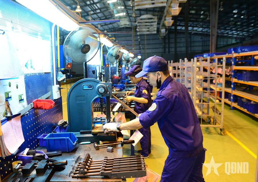 | Fabrica Z111 (Departamentul General al Industriei de Apărare) desfășoară procesul de asamblare a tunurilor de infanterie. Foto: SON BINH |