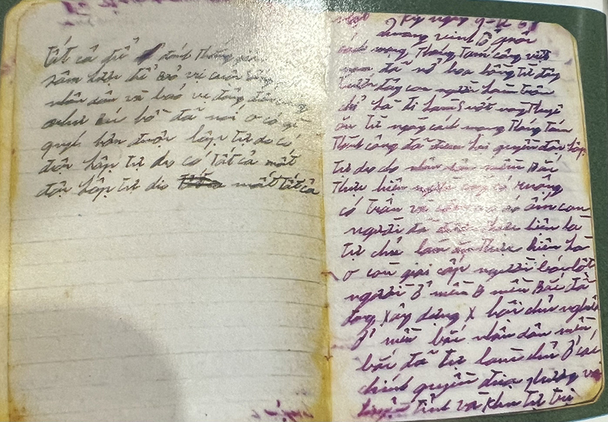 Acest jurnal, scris în anii 1968-1969 – o perioadă deosebit de aprigă a războiului de rezistență împotriva SUA – este un caiet auto-legat, cu dimensiunile de 9cm x 12cm, foarte ușor de transportat în buzunar. A mai rămas doar jumătate din copertă, făcută din hârtie de ciment; scrisul este estompat, iar unele cuvinte sunt ilizibile. Caietul a servit atât ca jurnal, cât și caiet. Conținutul său este foarte divers, incluzând înregistrări ale întâlnirilor, studiilor și rezoluțiilor. O pagină enumeră indemnizația plutonului pentru ianuarie 1969. Primele pagini conțin mai multe cântece: trei cântece vietnameze, două cântece laotiene și o traducere vietnameză a Internaționalei. Dintre cele două cântece laotiene, unul este înregistrat ca piesă vocală, iar celălalt ca traducere vietnameză (de exemplu, „Auzind sunetul focurilor de armă în depărtare”).