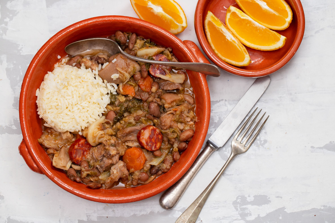Feijoada este o tocană de fasole tipică, populară în mesele de familie portugheze, mai ales iarna. Această mâncare portugheză de iarnă este preparată cu fasole, carne de porc, cârnați și condimente. Feijoada nu este doar bogată în nutrienți, ci aduce și căldură și energie într-o zi rece de iarnă.