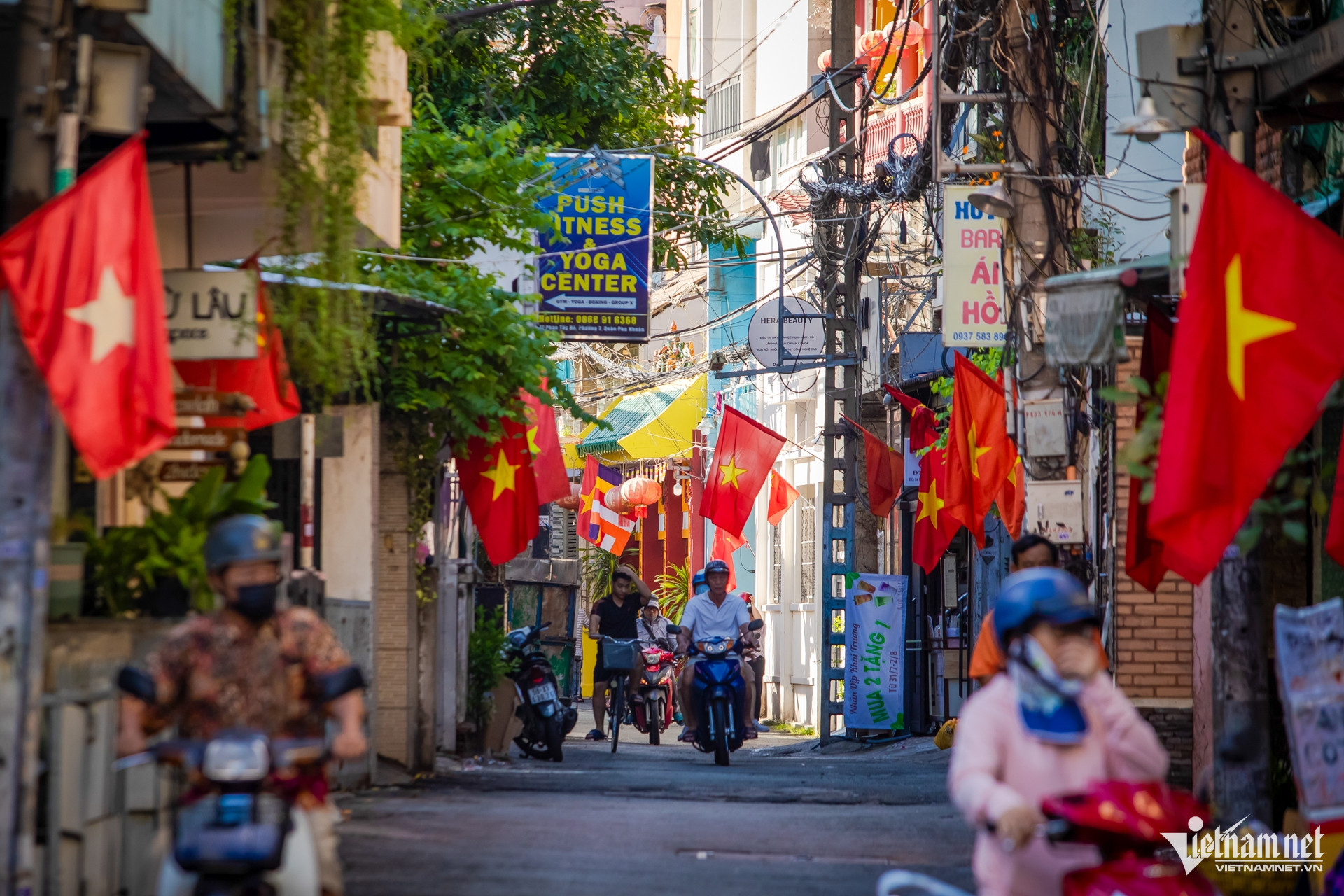 O mică alee de pe strada Le Quang Dinh (cartierul Hanh Thong) este împodobită cu steaguri de către localnici, creând o atmosferă liniștită și ciudat de frumoasă.