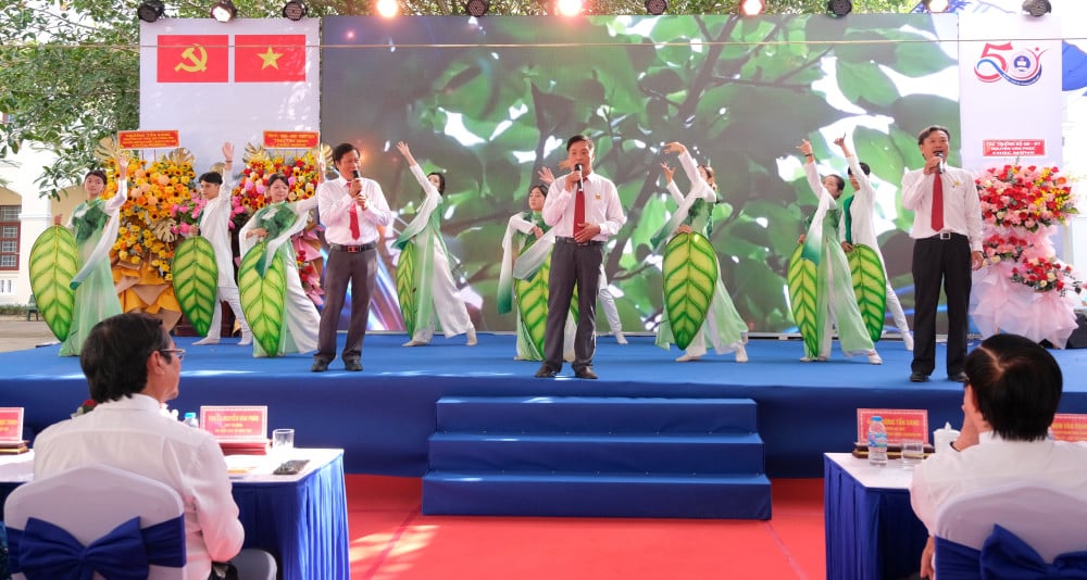 La ceremonie, directorul Liceului Hau Nghia, Tran Van Truyen, a trecut în revistă parcursul de 50 de ani de „cultivare a virtuții și dezvoltare a talentului”, confirmând eforturile persistente ale multor generații de profesori, personal și angajați în cauza creșterii generațiilor viitoare în această țară bogată în tradiții revoluționare.
