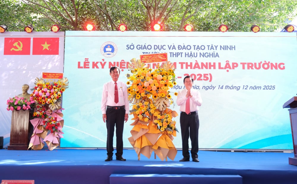 Vorbind la ceremonie, fostul membru al Biroului Politic și fostul președinte Truong Tan Sang a recunoscut și apreciat extrem de mult contribuțiile imense ale generațiilor de profesori la sistemul de învățământ local; afirmând că acesta este un ținut revoluționar, unde educația joacă un rol deosebit de important în creșterea și dezvoltarea oamenilor; și exprimându-și speranța că personalul, profesorii și elevii Liceului Hau Nghia vor continua să depună eforturi pentru a transforma școala într-o instituție de învățământ fiabilă a provinciei în prezent și în viitor, contribuind la formarea resurselor umane pentru a satisface cerințele de dezvoltare ale țării.