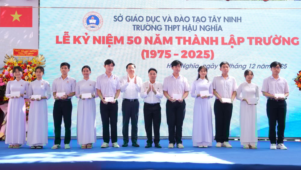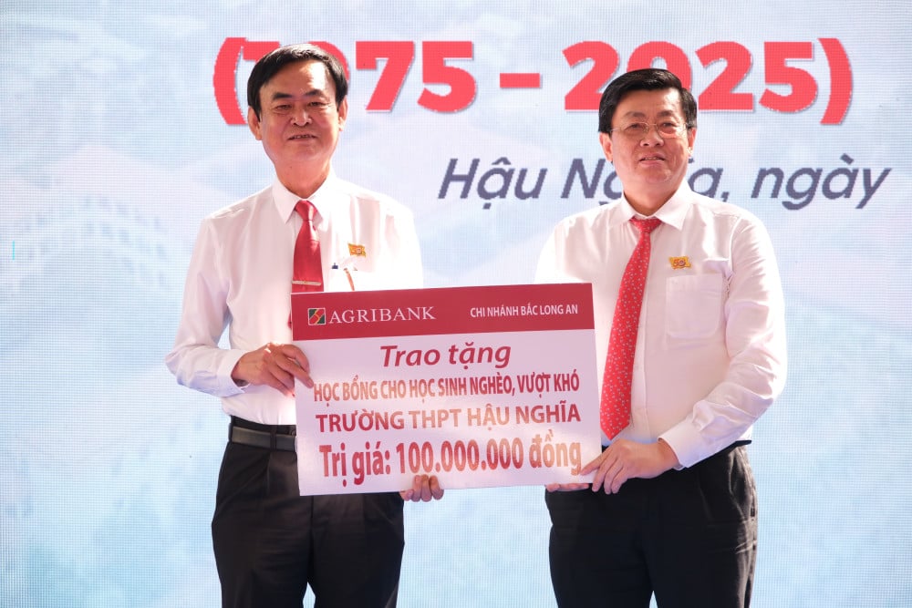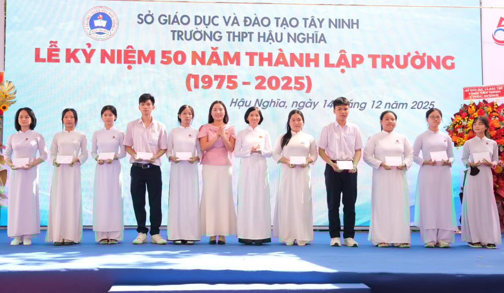 Cu această ocazie, Liceul Hau Nghia a acordat 20 de burse elevilor care se confruntă cu dificultăți și 10 premii elevilor remarcabili; sucursala Bac Long An a Agribank a donat școlii 100 de milioane de VND pentru a-i sprijini eforturile educaționale. Școala a oferit, de asemenea, buchete de flori în semn de recunoștință față de organizațiile și persoanele care au sprijinit și au contribuit întotdeauna la dezvoltarea școlii.
