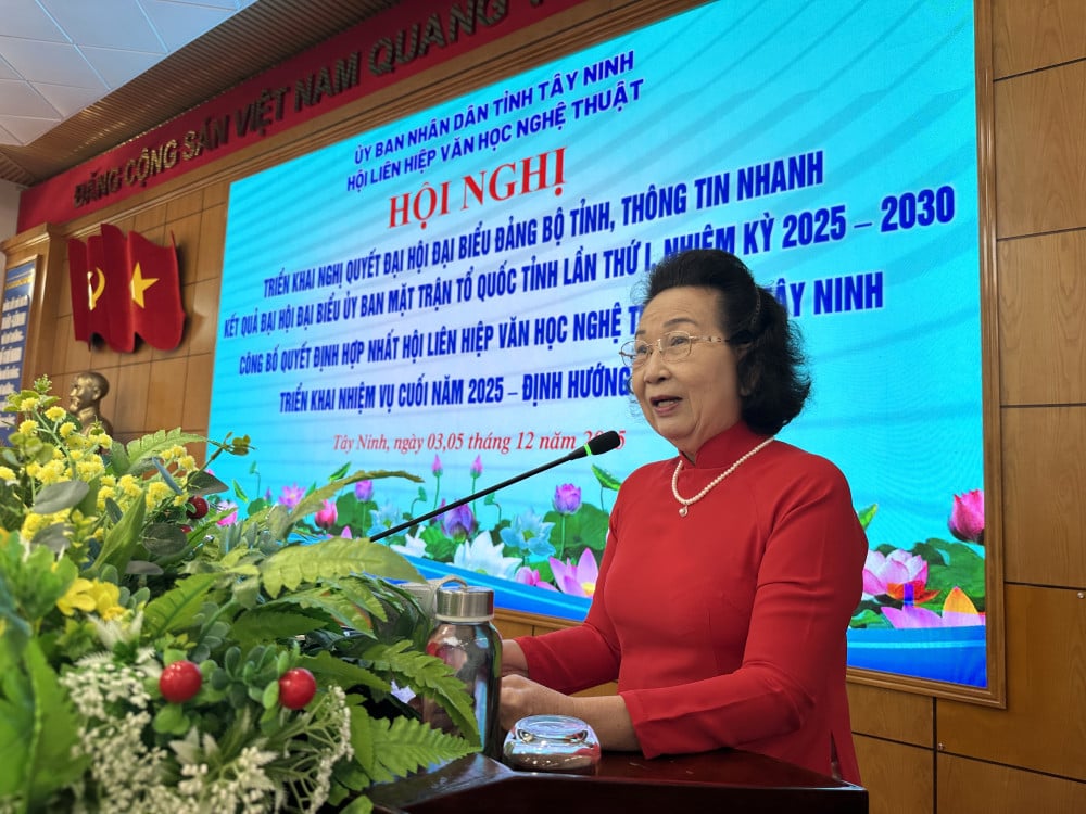 În același timp, conferința a anunțat decizia de fuzionare a Asociației Provinciale de Literatură și Arte Tay Ninh , de stabilire a sarcinilor pentru sfârșitul anului 2025 și de orientare pentru 2026.