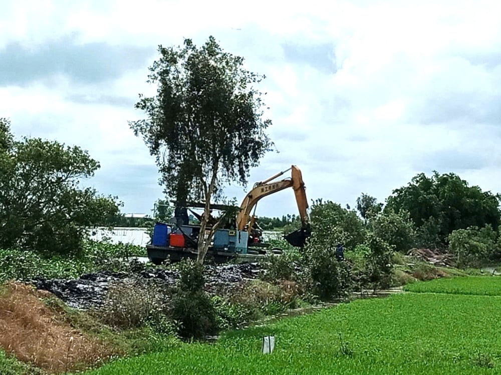 În zona digului 29, cătunul Thuy Tay, comuna Thanh Hoa, există aproximativ 60 de hectare de orez Toamnă-Iarnă 2025, vechi de aproximativ 40 de zile. Pentru a proteja orezul, fermierii care dețin terenuri în această zonă a digului l-au angajat pe Kobe să scoată pământul pentru a consolida suprafața digului și a o consolida pentru a preveni revărsarea apei.
