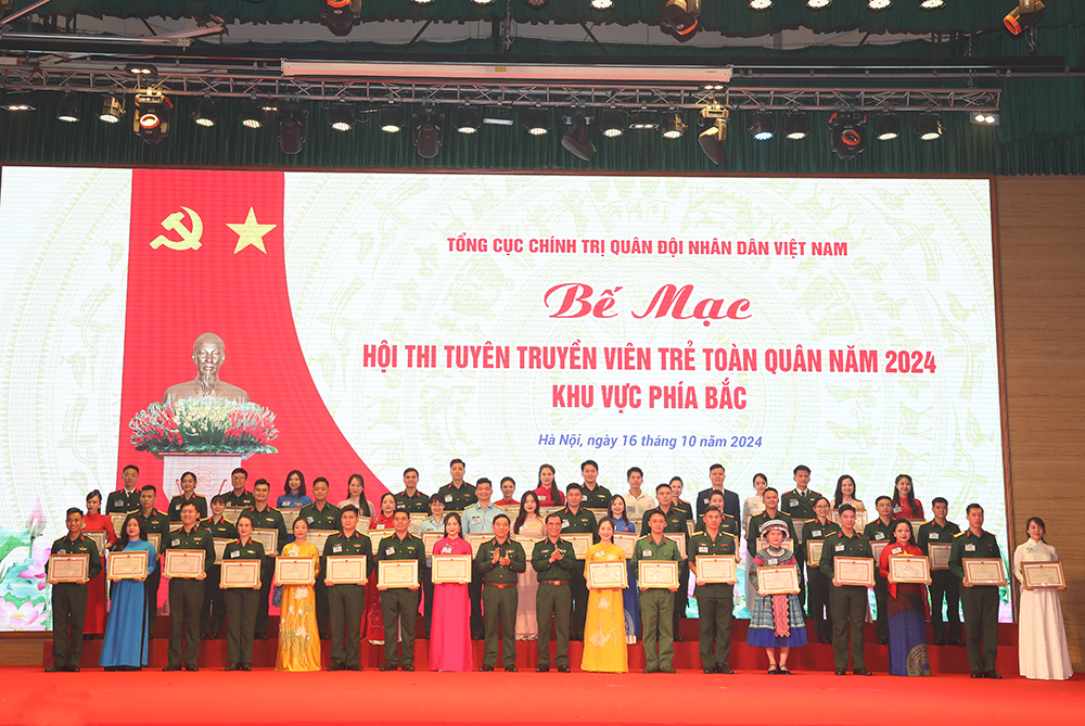 ( Bqp.vn ) – Утром 16 октября в Ханое Главное политическое управление Вьетнамской народной армии провело церемонию закрытия конкурса молодых пропагандистов 2024 года для всей армии Северного региона. На церемонии закрытия присутствовали генерал-лейтенант Ле Куанг Минь, заместитель директора Главного политического управления Вьетнамской народной армии; секретарь Центрального союза молодёжи Нгуен Фам Зуй Транг, председатель Центрального совета юных пионеров; руководители и представители ведомств и подразделений как в армии, так и за её пределами.