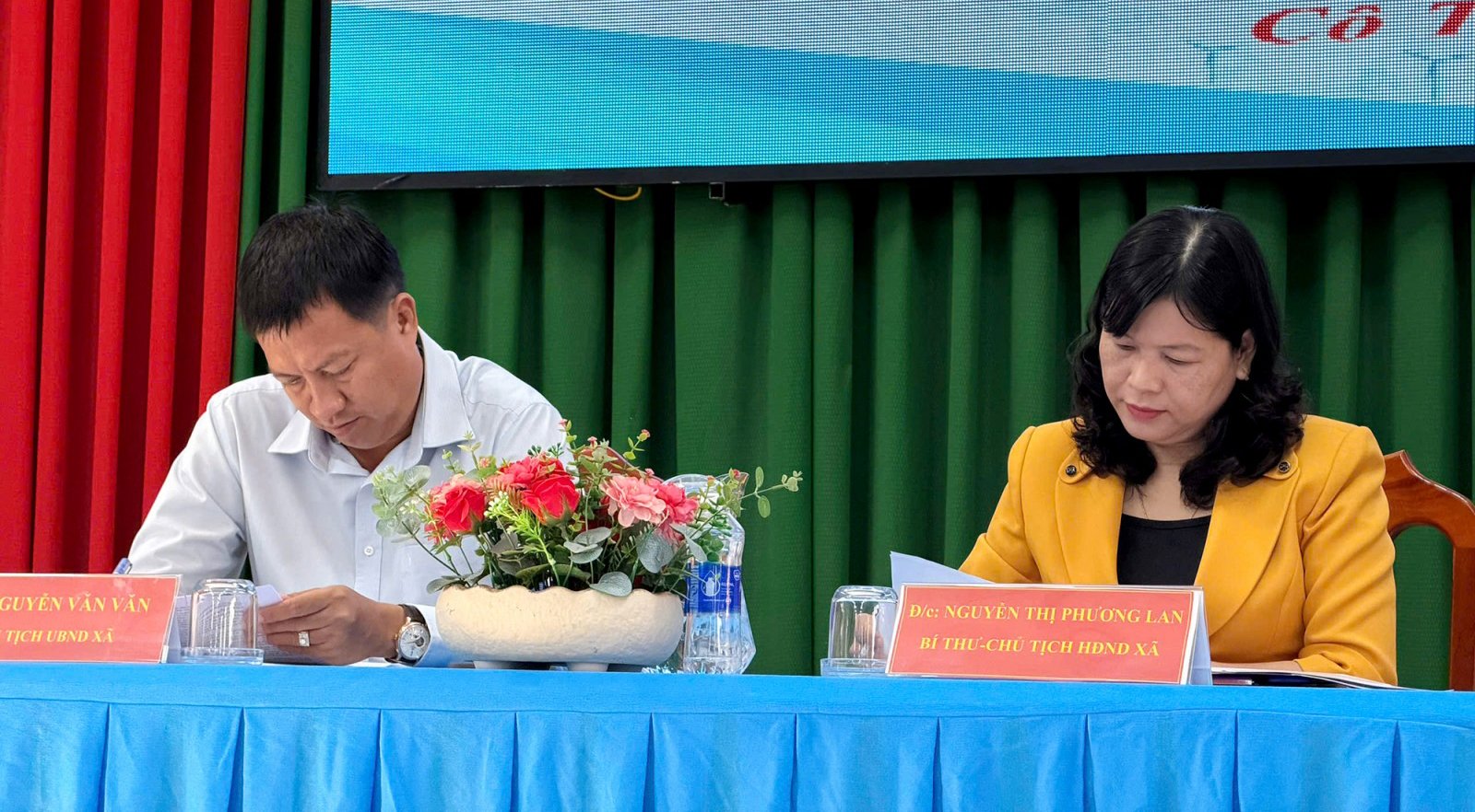 Секретарь партии, председатель Народного совета коммуны Ко То Нгуен Тхи Фыонг Лан и председатель Народного комитета коммуны Ко То Нгуен Ван Ван сопредседательствовали на диалоге.