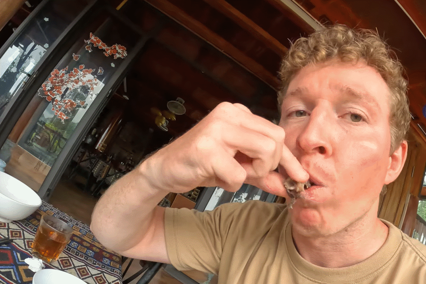 По словам местных жителей, пирог готовится из простых и доступных ингредиентов. Корж делается из рисовой муки и куркумы, а начинка — из свиного жира, лука, перца и т. д.