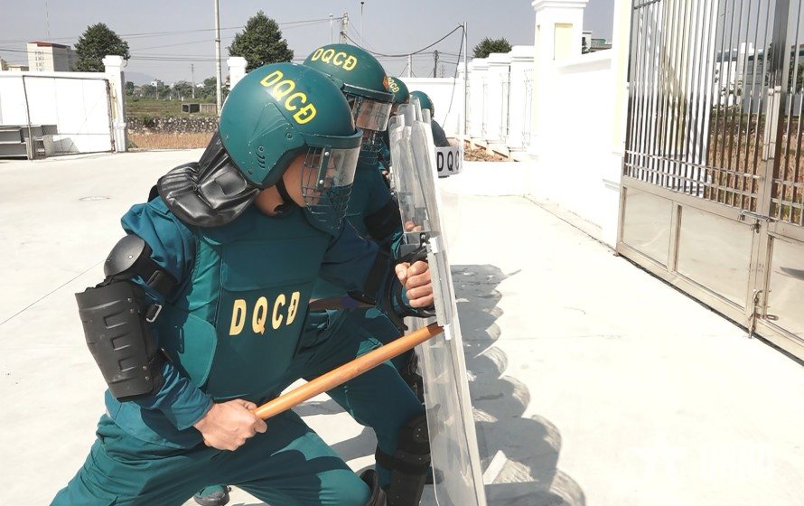 Мы присутствовали в военном командовании коммуны Мыдык, когда офицеры и солдаты проводили учения по действиям в ситуации А2. Гипотетическая ситуация: перед зданием Народного комитета коммуны собралась группа незнакомцев, которые хотели устроить беспорядки и действовали безрассудно, намереваясь ворваться в штаб и уничтожить его.