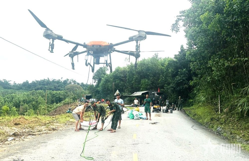 Чтобы ускорить транспортировку и доставку продовольствия в деревни и поселки, изолированные паводковыми водами и оползнями, за последние два дня при поддержке и содействии волонтерских групп из города Хошимин и провинции Куангнгай командование PTKV 3-Tra My организовало сотни полетов беспилотников для безопасной перевозки грузов через реки и горы.