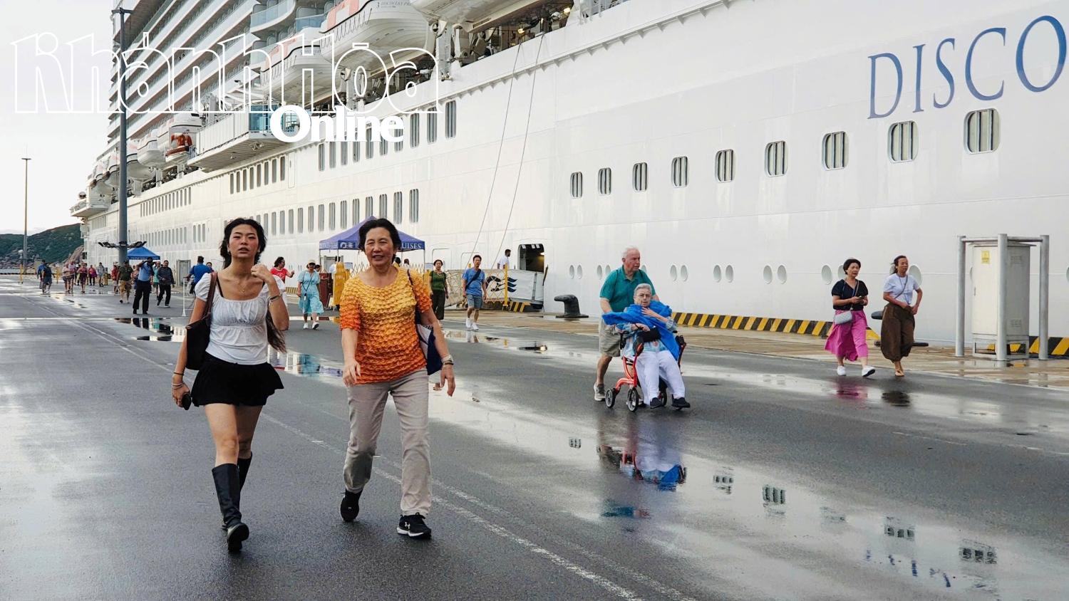 | Пассажиры круизного лайнера Discovery Princess высаживаются в международном порту Камрань, чтобы начать экскурсию по Кханьхоа . |