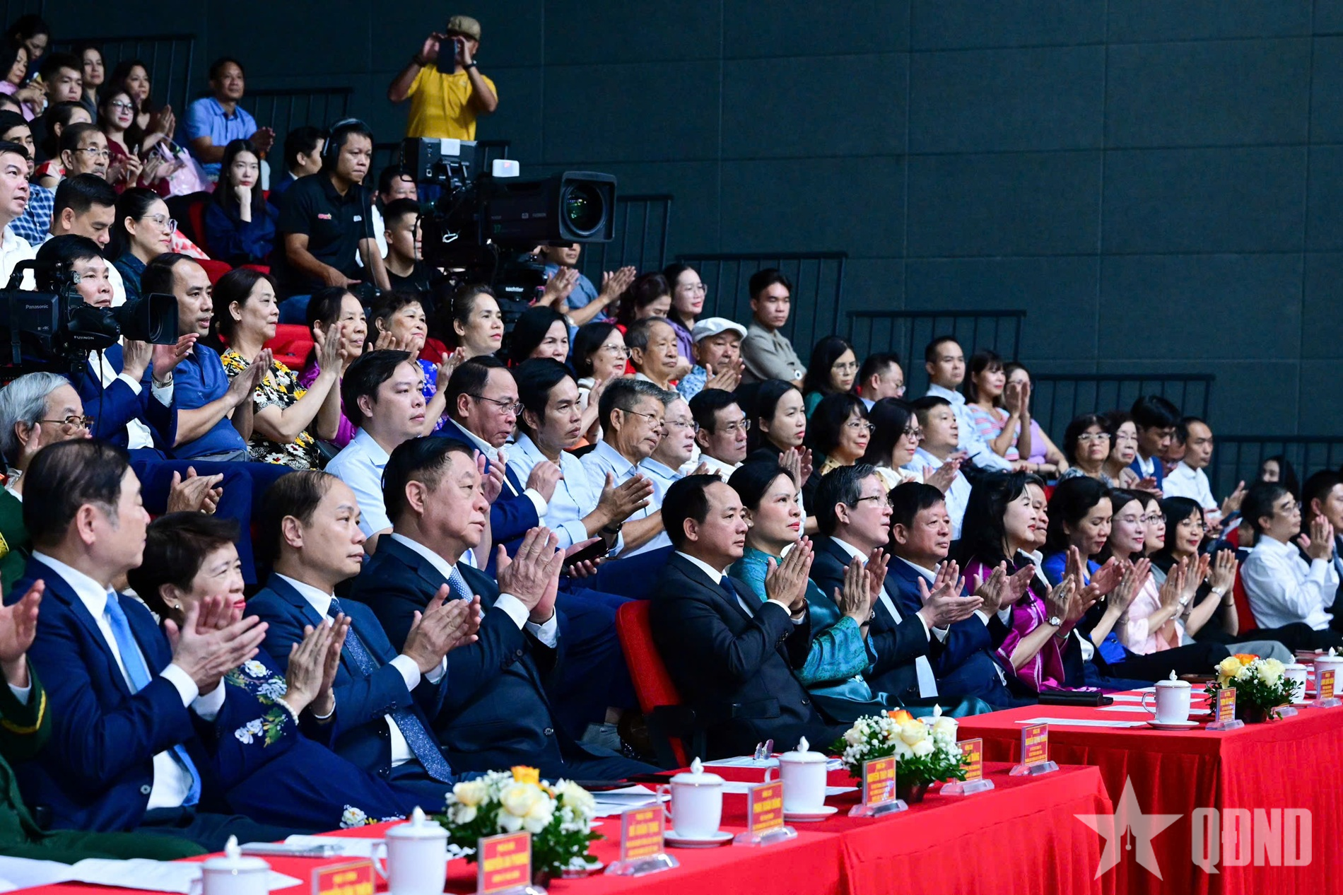 На церемонии товарищ Нгуен Чонг Нгиа, генерал Чинь Ван Кует и другие руководители вручили логотипы, медали и сертификаты авторам-победителям, а также вручили Почетные грамоты от Центральной комиссии по пропаганде и мобилизации масс восьми провинциям и городам, добившимся выдающихся успехов в координации проведения конкурса.