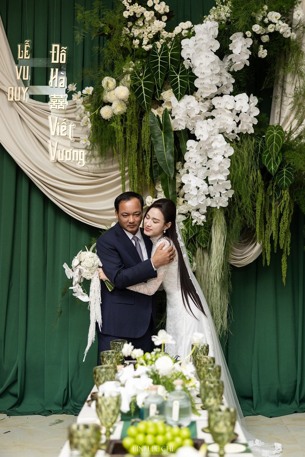 Жених Нгуен Вьет Выонг проявил деликатную заботу о настроении жены. Он всегда стоял рядом с ней, держа До Тхи Ха за руку и ласково утешая её. На фотографии жених кланяется родителям жены, проявляя уважение к традиционным ритуалам.