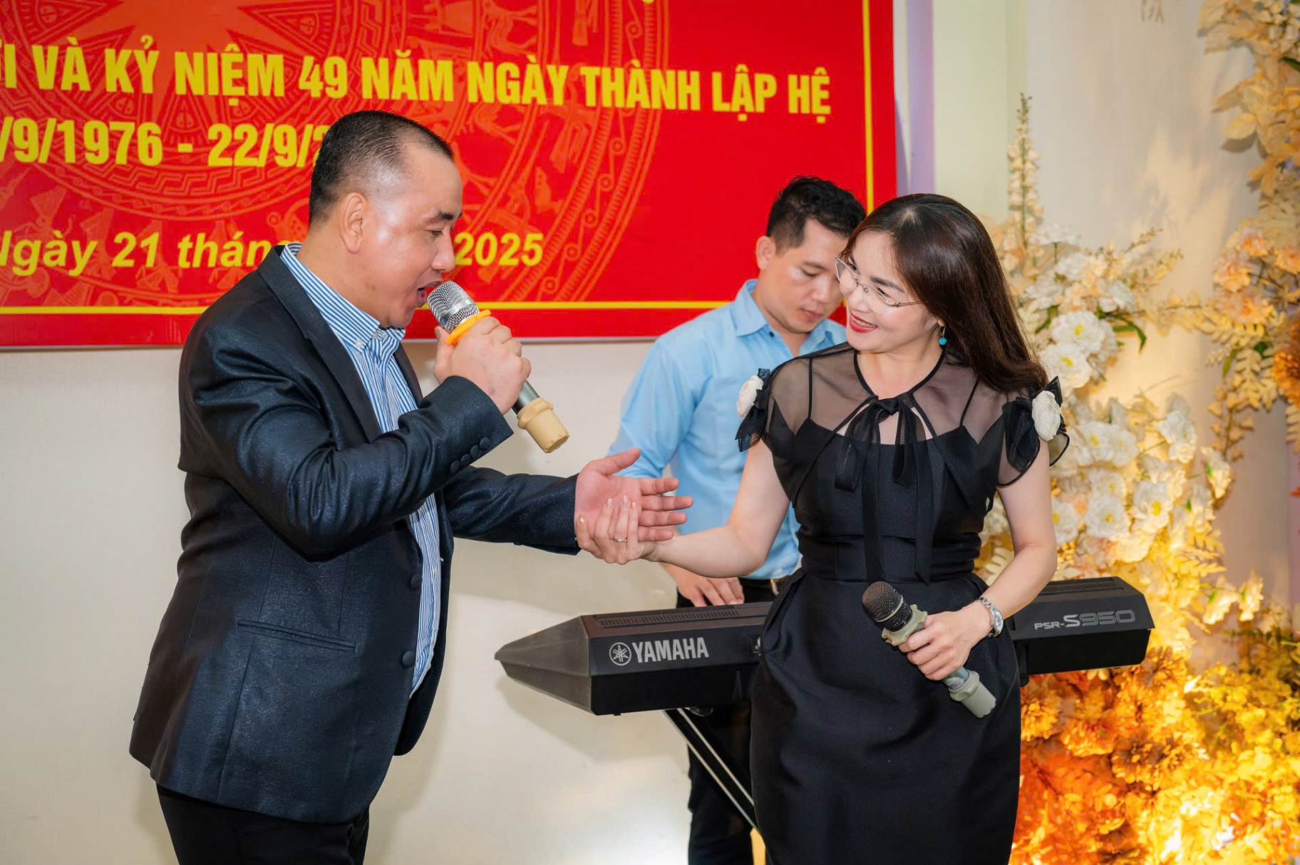 Артист Доан Нга спел дуэтом со студентами Лаосской народной армии на встрече, посвященной 49-й годовщине традиционного Дня Системы 4 в Академии политики. |