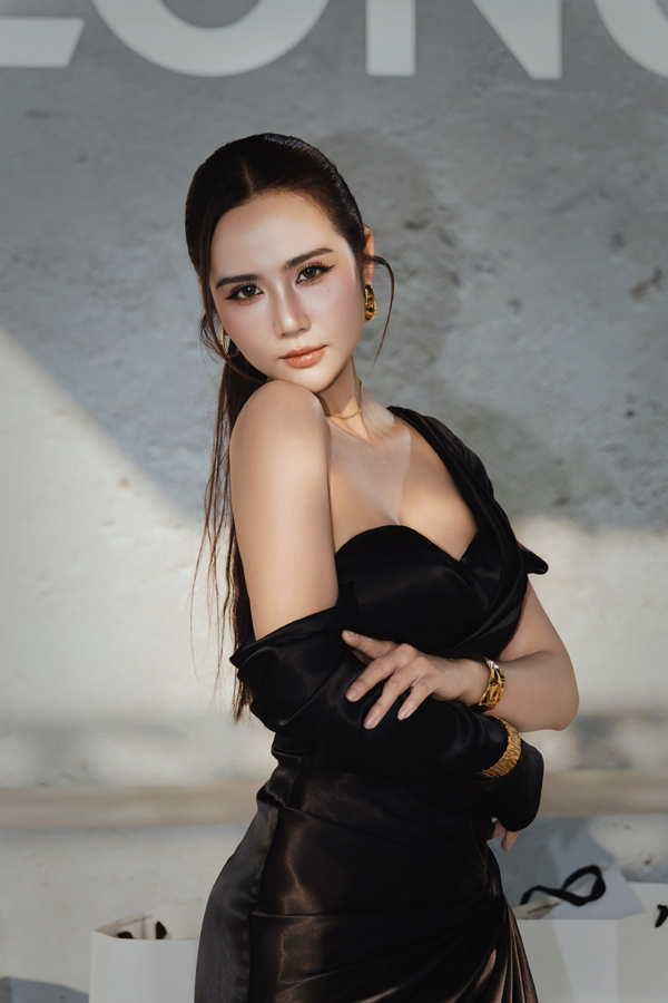 «Ускользнув» от образа сильной, индивидуалистической женщины-генерального директора в фильме «В миллиметре от тебя», Фан Минь Хуен заставила зрителей трепетать, появившись в черном вечернем платье, дизайн которого напоминал о соблазнительной, могущественной и таинственной красоте древнегреческих богинь, на показе мод дизайнера До Лонга в Хошимине.