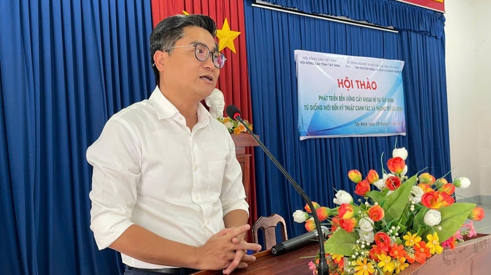 Заместитель председателя Вьетнамского комитета Отечественного фронта провинции Тайнинь, председатель Ассоциации фермеров провинции Тайнинь Нгуен Тхань Тунг выступил на семинаре.