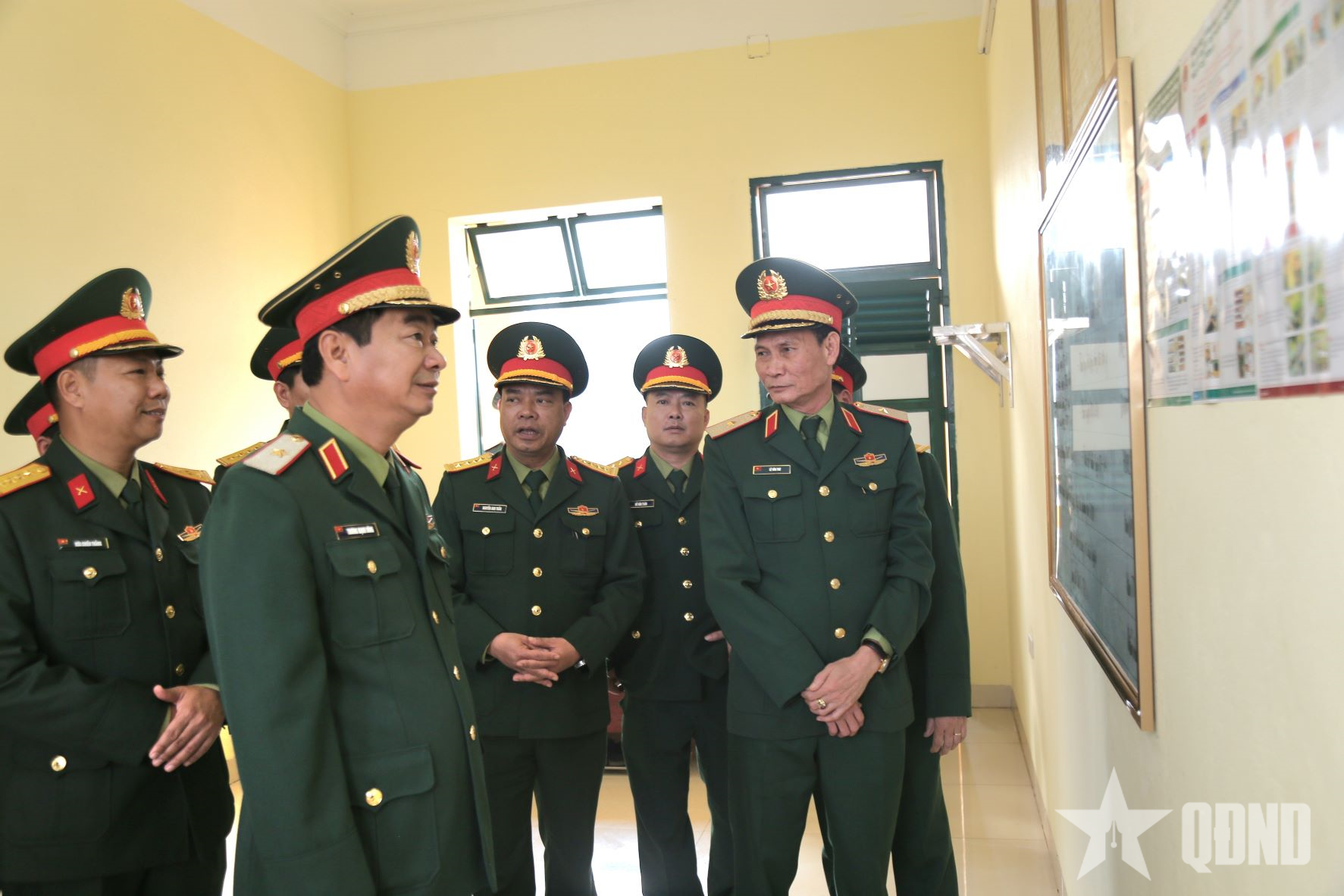 | Генерал-майор Труонг Мань Зунг, командующий военным округом 1, осмотрел казармы, где проходит учебный курс в батальоне 3, полку 2, дивизии 3. |