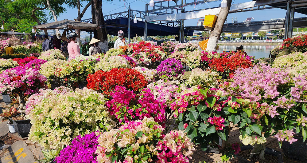 В наши дни красочный цветочный рынок Тэт привлекает множество людей, желающих приобрести украшения к празднику и запечатлеть прекрасные мгновения весны. На весеннем цветочном рынке в городе Лонгсюен торговцы торгуют цветами всю ночь напролёт. Тысячи декоративных растений, декоративных цветов... цены зависят от возраста и вида цветка и варьируются от десятков тысяч до нескольких сотен тысяч до более чем миллиарда донгов. Партии товаров находятся рядом с сотнями тысяч цветочных горшков всех видов, таких как: разноцветные малиновые хризантемы, хрустальные, хризантемы с грубыми листьями, розы, герберы, гвоздики, цветы любви, куриные цвета, подсолнухи, бархат, примулы, георгины, бархатные розы, розы мандинь... Особенно яркие цвета у декоративных растений: бугенвиллея, пятицветная, рубиновая роза... За каждым цветочным горшком, за каждым различным ароматом тщательно ухаживают люди, придавая ему самую красивую форму, обещающую принести красочную весну. «Цветы Тэта привлекательны своим разнообразием, множеством новых и красивых сортов, уникальными и странными цветами, горшечными растениями, такими как подсолнухи, хризантемы всех видов... а также некоторыми фруктовыми деревьями для показа на Тэт», - поделилась г-жа Нгуен Тхи Чинь (город Лонгсюен).