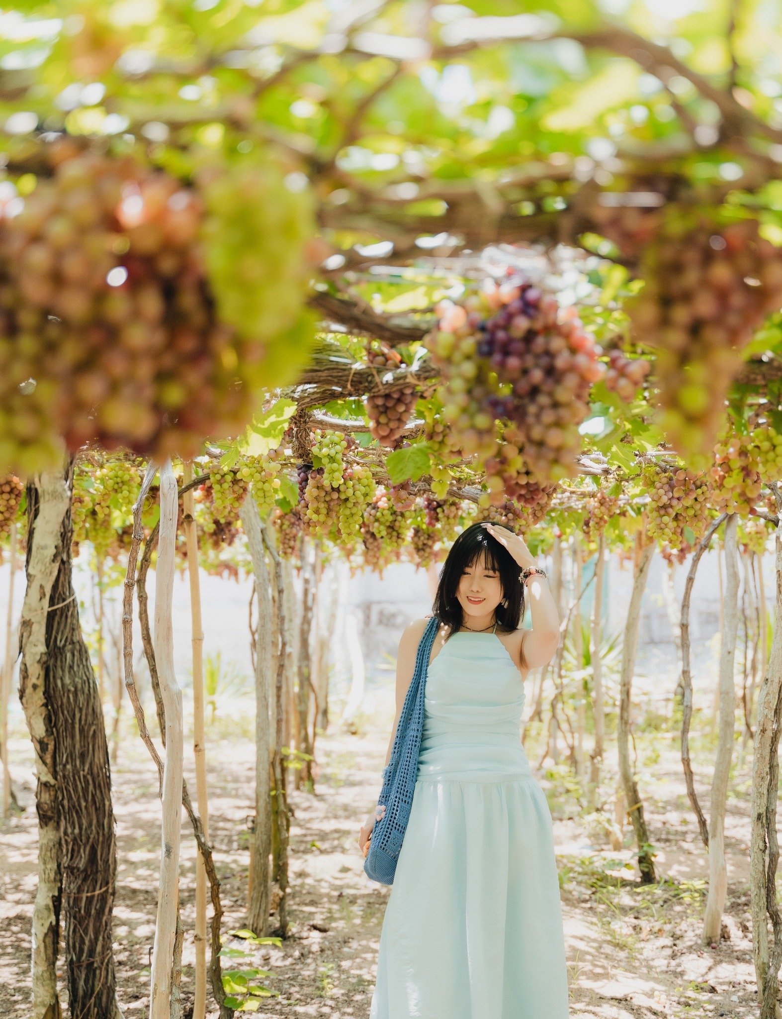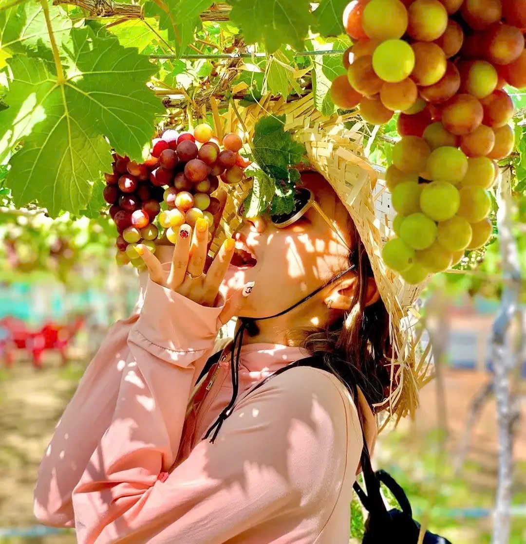 Посетители могут прогуляться среди виноградных лоз, увешанных плодами, сфотографироваться на фоне прохладного зеленого пейзажа, увидеть процесс выращивания винограда и купить свежий виноград в качестве подарка.