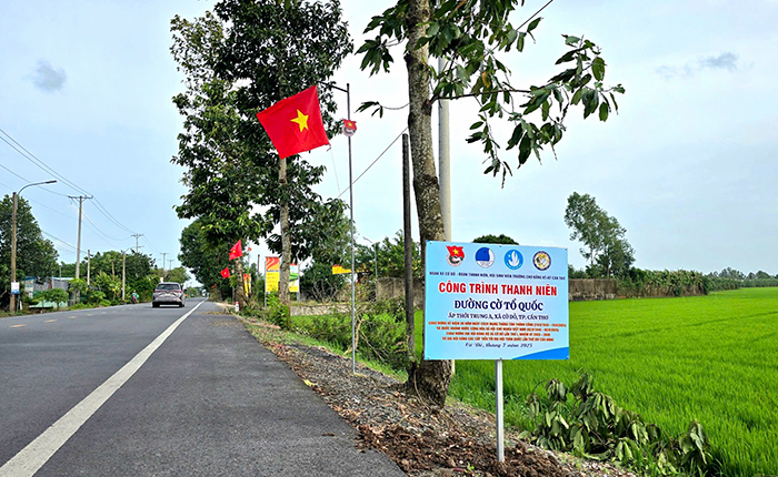 «Дорога национального флага» в деревне Тхой Чунг А, реализованная молодежью коммуны Ко До совместно с Союзом молодежи Колледжа экономики и технологий Кантхо в июле 2025 года.