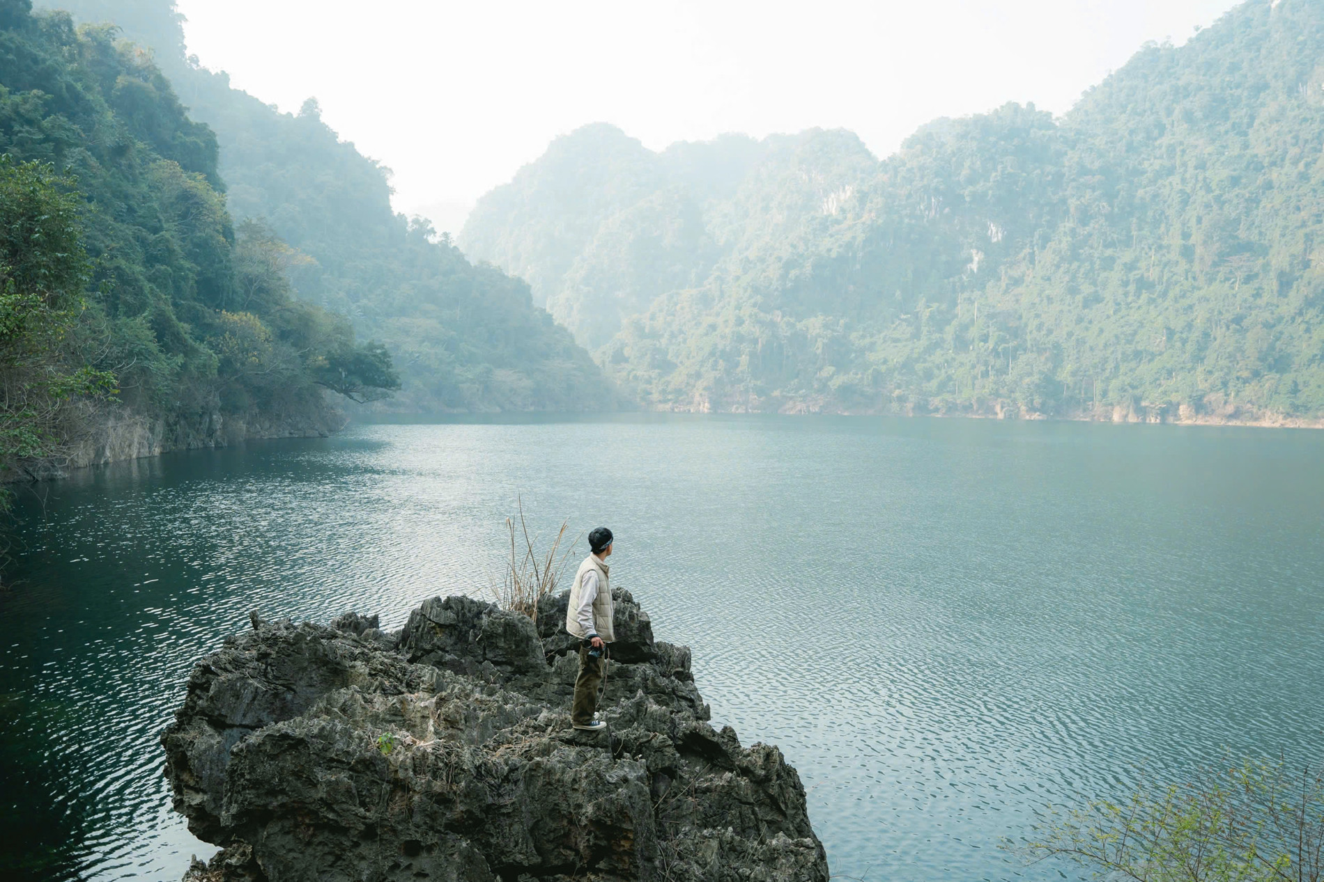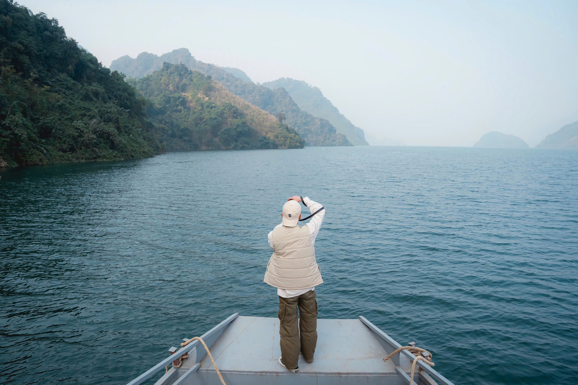 Прибыв в залив Нгой Хоа, посетители могут покататься на лодке, чтобы полюбоваться пейзажем, прогуляться вокруг зеленых островов и почувствовать прохладный пар от озера.